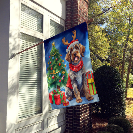 Wirehaired Pointing Griffon Christmas Reindeer House Flag
