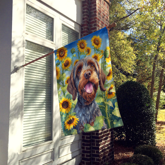Wirehaired Pointing Griffon in Sunflowers House Flag