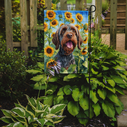 Wirehaired Pointing Griffon in Sunflowers Garden Flag