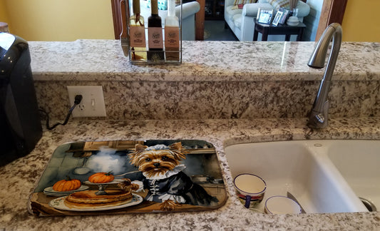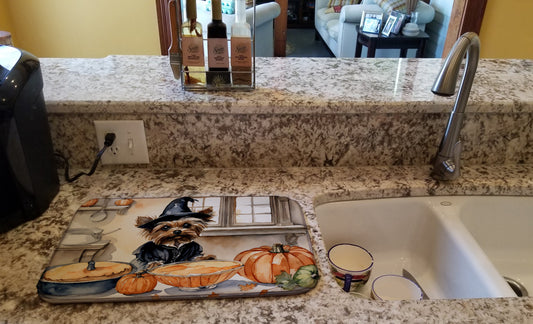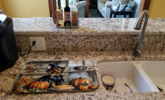 Yorkie Fall Kitchen Pumpkins Dish Drying Mat