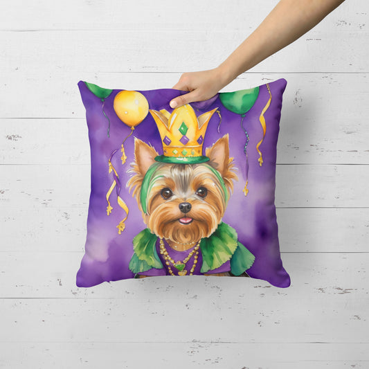 Yorkshire Terrier King of Mardi Gras Throw Pillow
