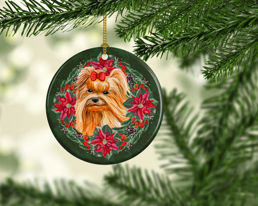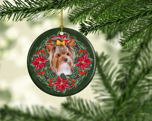 Yorkshire Terrier #2 Poinsetta Wreath Ceramic Ornament