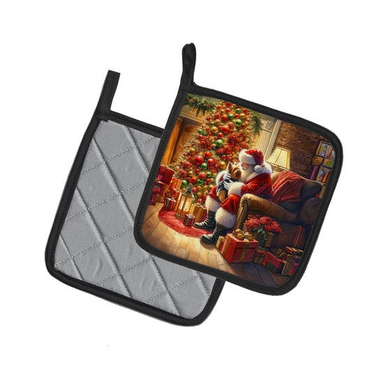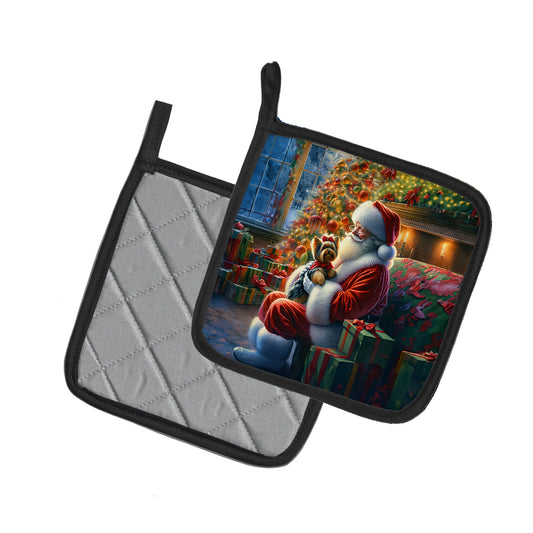 Yorkshire Terrier Yorkie and Santa Claus Pair of Pot Holders