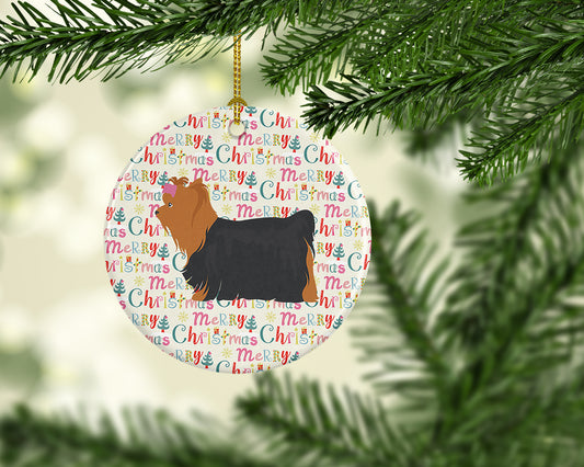 Yorkshire Terrier Merry Christmas Ceramic Ornament