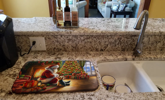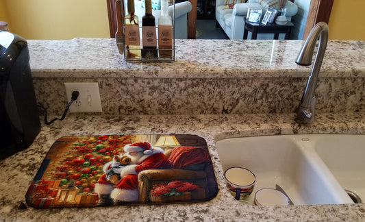 Yorkshire Terrier Yorkie and Santa Claus Dish Drying Mat