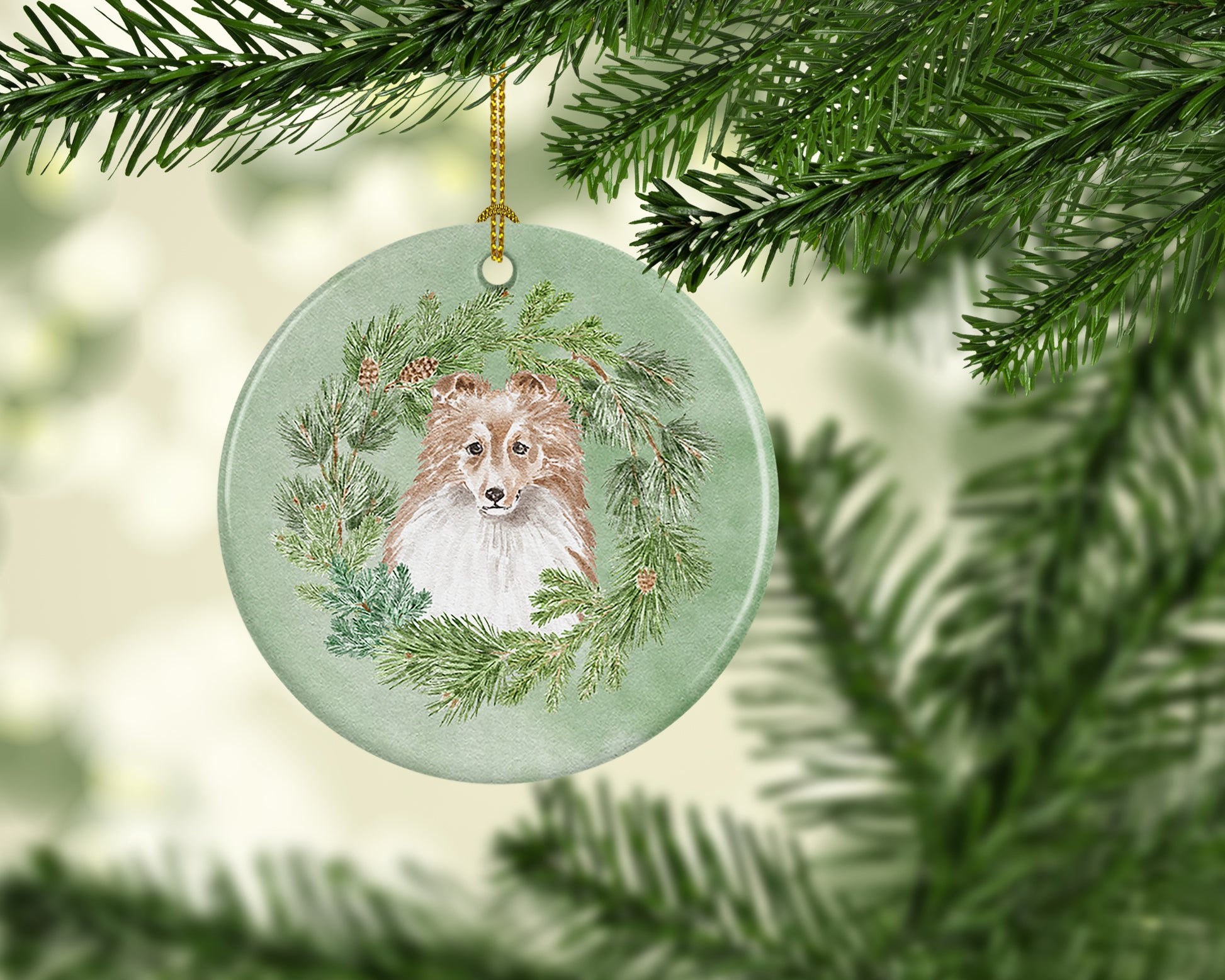 Sheltie/Shetland Sheepdog Adult Sable Christmas Wreath Ceramic Ornament
