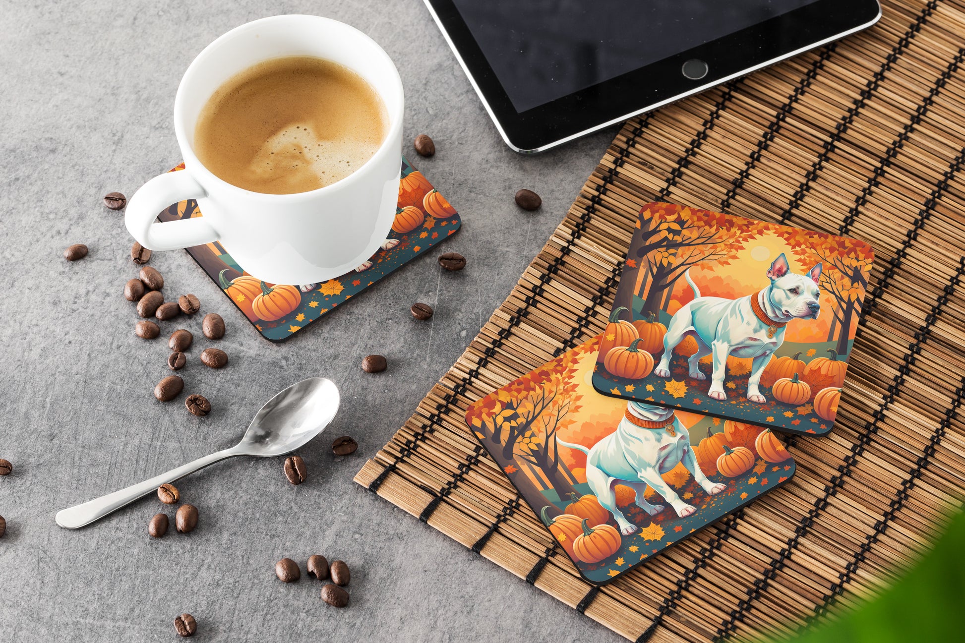 Foam Coasters featuring breed specific Pit Bull Terrier artwork. Presenting our Set of 4 Foam Coasters, a stylish and practical addition to your table setting. Each square coaster, measuring 3 1/2 inches by 3 1/2 inches, is perfectly sized to accommodate various drinkware, from coffee mugs to tumblers. These coasters stand out with their full-color artwork, permanently dyed onto the material for a vibrant and fade-resistant finish. They're not just functional, they're a fashionable statement, adding a touch of flair to any gathering or event. Our foam coasters serve a dual purpose - they protect your table from water stains and are perfect for both hot and cold drinks. The material used is similar to that of our high-quality mouse pads, ensuring durability and heat resistance. These coasters are easy to maintain - simply wash them in the top of your dishwasher and lay flat to dry. The design won't come off, ensuring they retain their vivid colors for years. Pair them with one of our insulated coolers or huggers for a cohesive, thoughtful gift set. Enhance your beverage experience with our Set of 4 Foam Coasters.