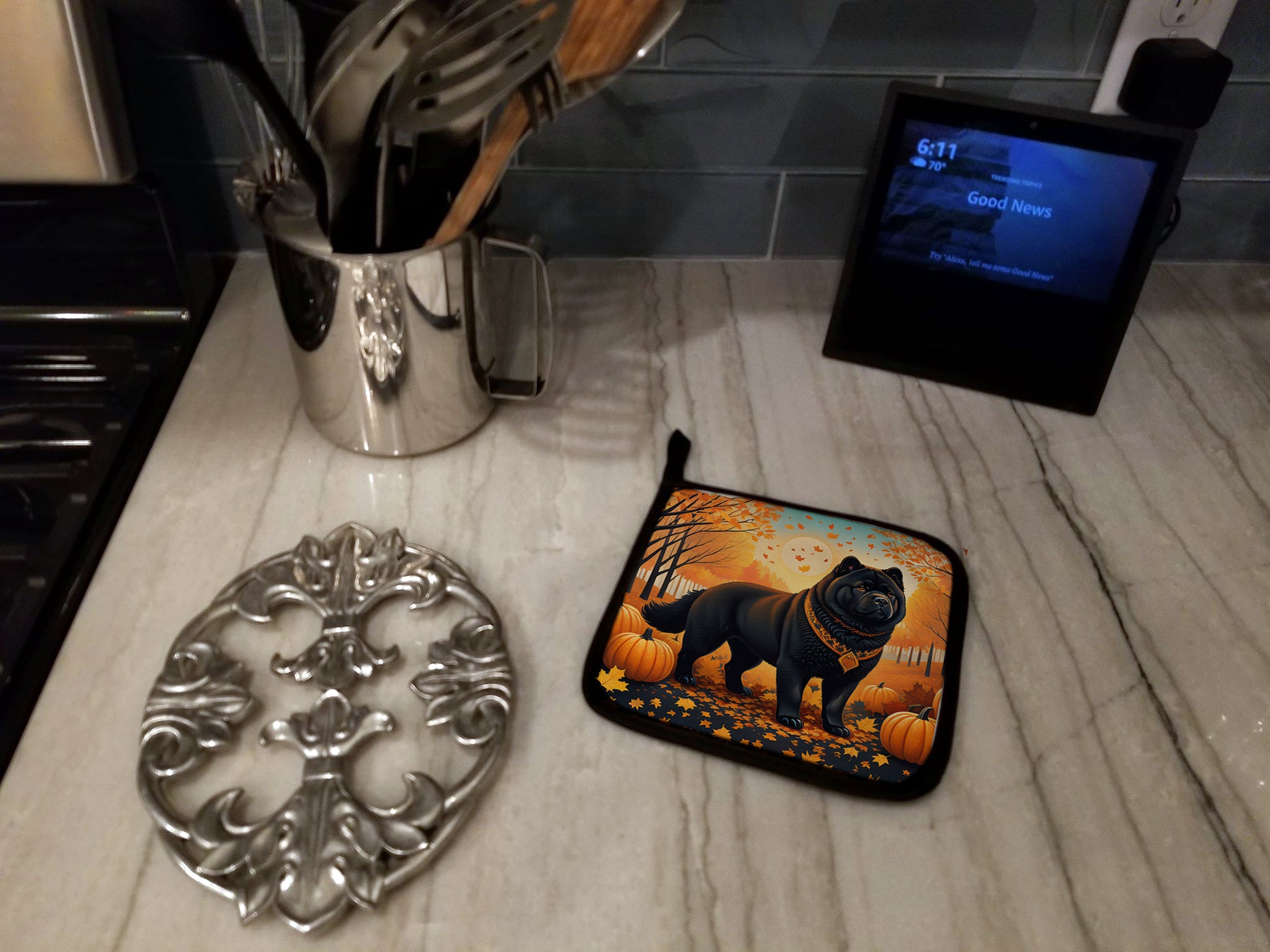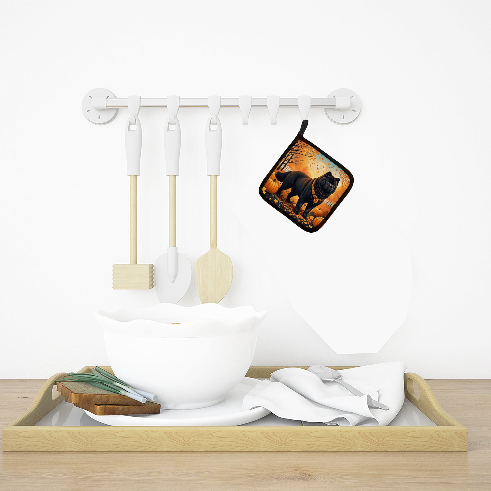 Black Chow Chow Fall Pair of Pot Holders