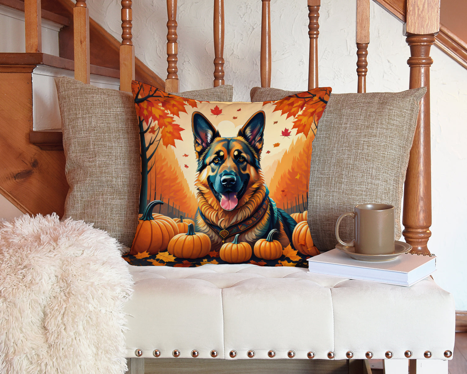 German Shepherd Fall Throw Pillow