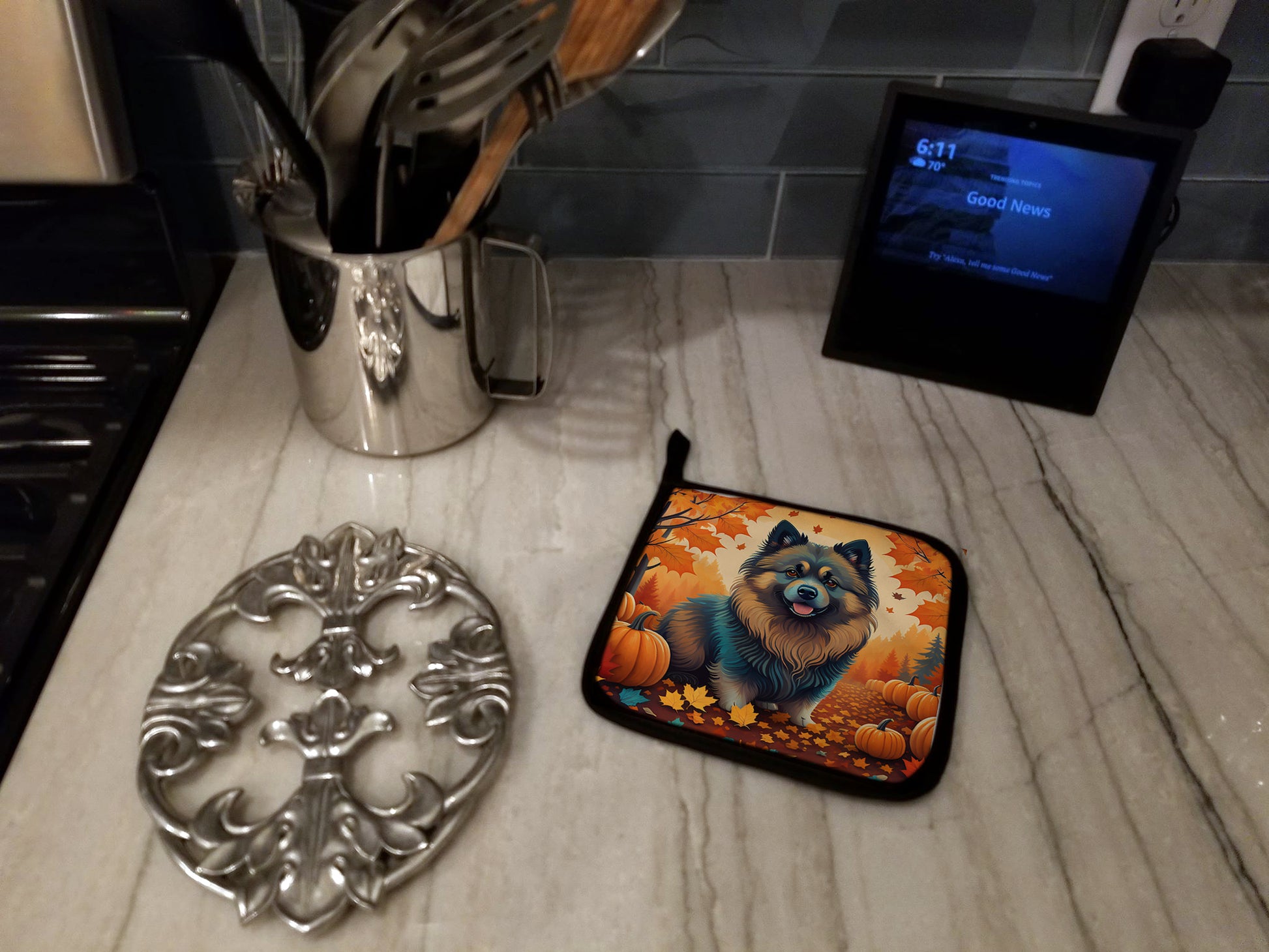 Keeshond Fall Pair of Pot Holders