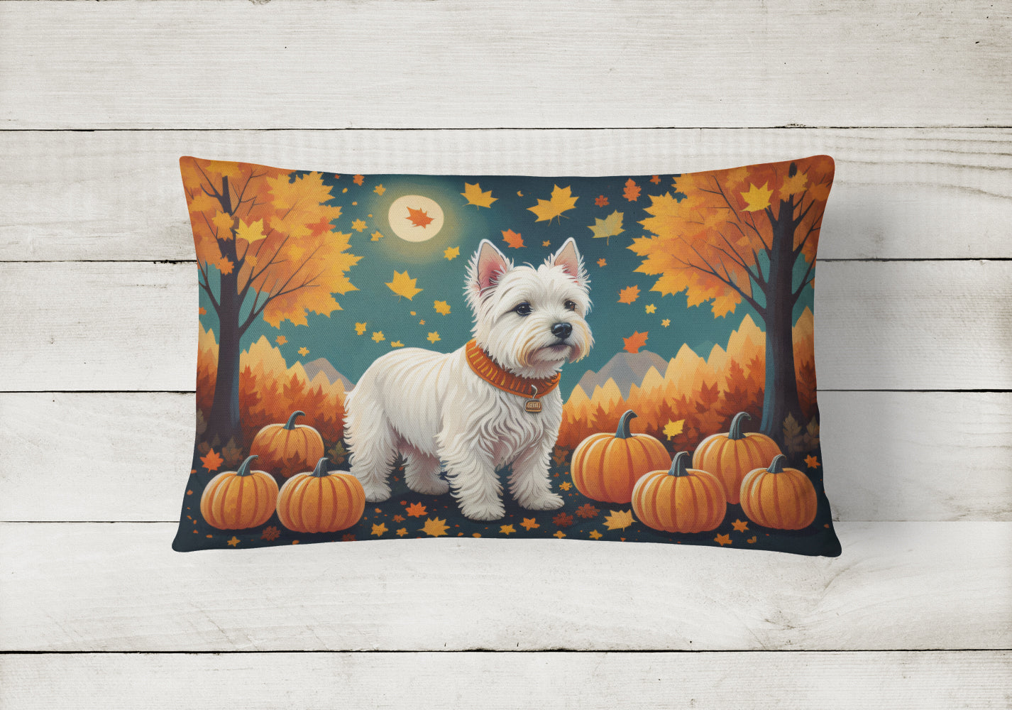 Throw Pillow featuring breed specific West Highland White Terrier artwork. Embrace the fusion of comfort and style with Caroline's Treasures Fabric Decorative Pillow. This 12x16 inch outdoor pillow is designed to complement your patio furniture, adding a splash of color and artistry to your outdoor setting. Constructed with a 100% Polyester Fabric pillow sham filled with a plush pillow form, this cushion is as comfortable as it is durable. Our outdoor pillow utilizes a novel fabric, meticulously woven for enhanced water resistance. This soft canvas material is equally suited for your indoor couch as well as outdoor settings such as the patio, porch, or veranda. To ensure enduring vibrance, we employ colorfast dyes resistant to fading even when subjected to weather elements. The making of this pillow involves the delicate sewing together of three fabric pieces to create a sham, into which a polyester insert is carefully placed. The result is an overstuffed pillow that tenaciously holds its shape. With both the sham and the pillow insert crafted in the United States, these handmade pillows are a testament to superior local craftsmanship. Note that as these pillows are handmade, sizes may slightly vary, enhancing their unique appeal. Enjoy comfort in style with Caroline's Treasures Fabric Decorative Pillow.