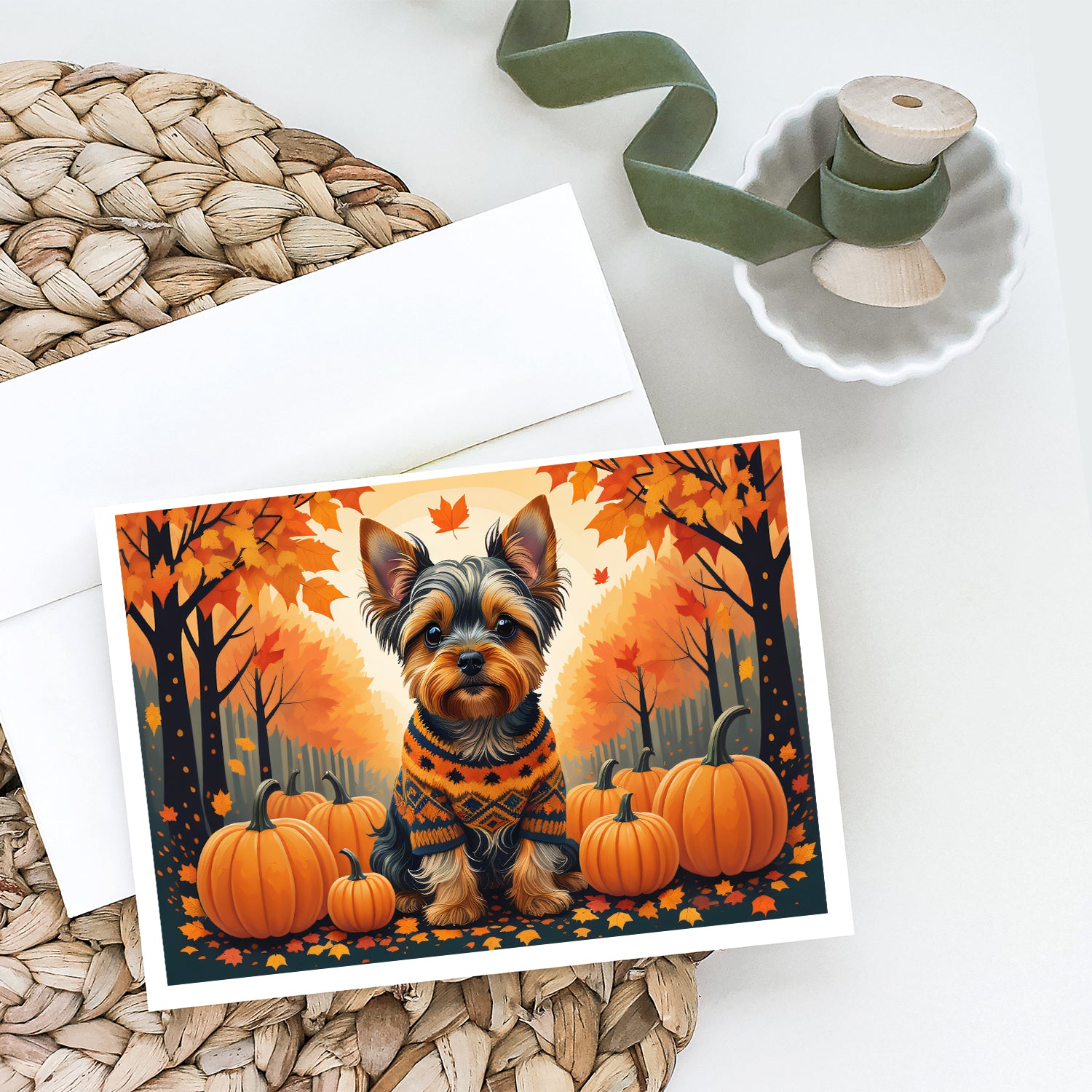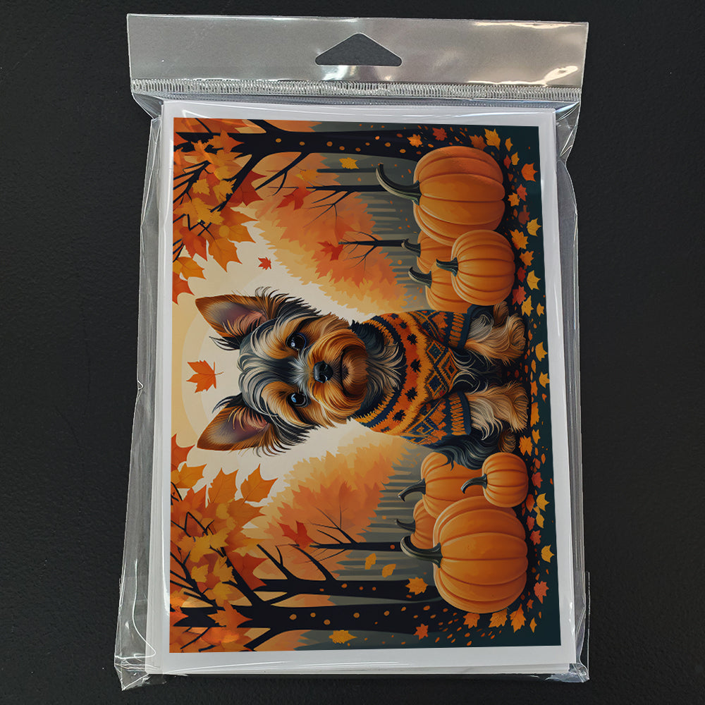 Yorkshire Terrier Fall Greeting Cards and Envelopes Pack of 8