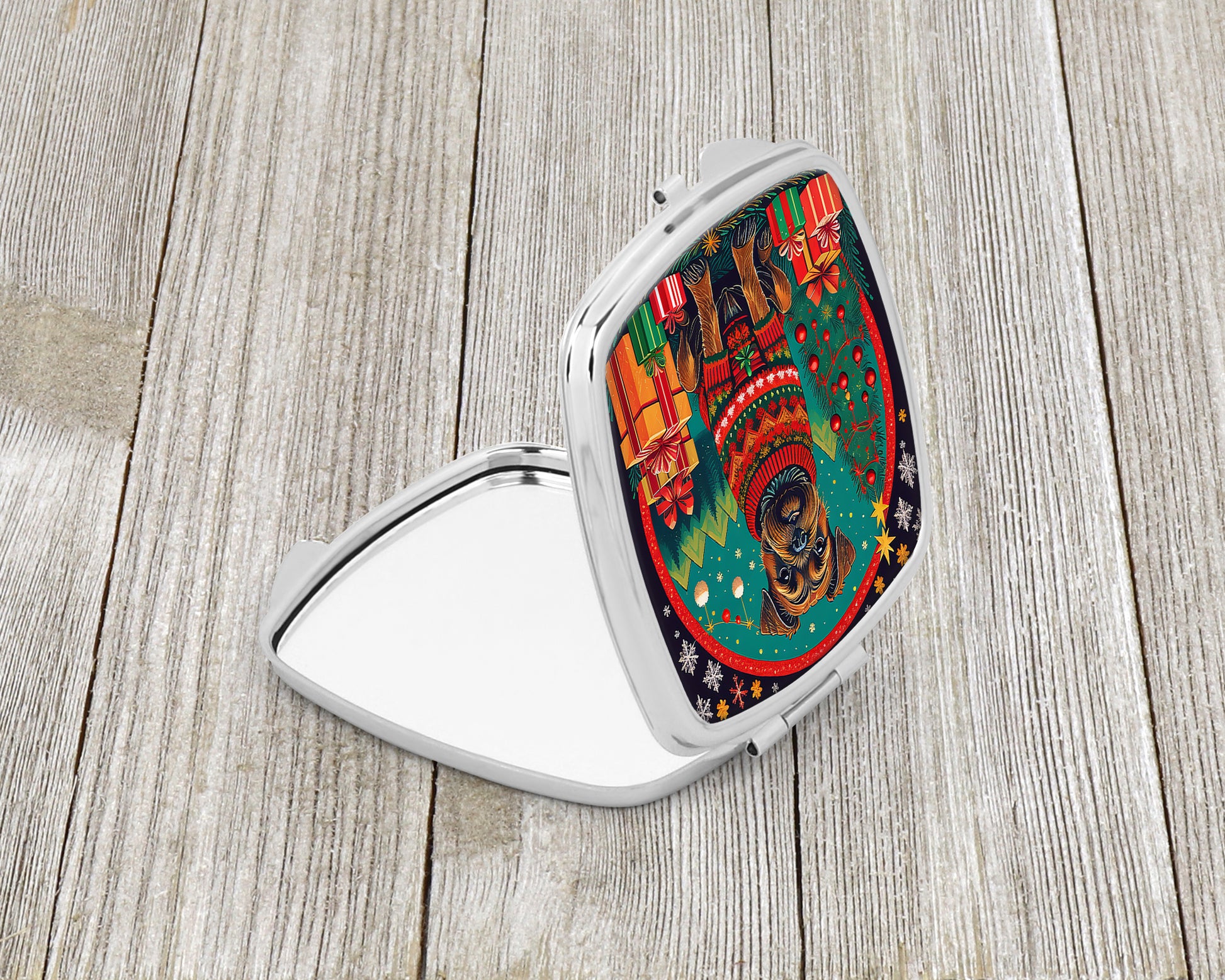Compact Mirror featuring breed specific Border Terrier artwork. Celebrate Christmas with this Christmas Compact Mirror. Introducing our Square Compact Mirror, a blend of elegance, functionality, and compactness, perfect for on-the-go touch-ups. This Silvertone metal mirror, with dimensions of 2.75 inches x 3 inches x .3 inches, fits effortlessly into your purse, handbag, or pocket, ensuring that you can check your appearance anytime, anywhere. Our compact mirror stands out with its eye-catching artwork on the front, adding a dash of style to this practical accessory. It is more than just a mirror; it's a statement piece that reflects your personality and aesthetic. When opened, this compact reveals two mirrors inside, doubling your perspective for precise touch-ups. The Silvertone metal construction ensures durability while maintaining a lightweight feel, making it an ideal everyday carry item. Whether you're rushing to a meeting, prepping for a dinner date, or just need a quick check on your look, our Square Compact Mirror is your reliable companion. Experience the perfect blend of style and practicality with this must-have accessory.