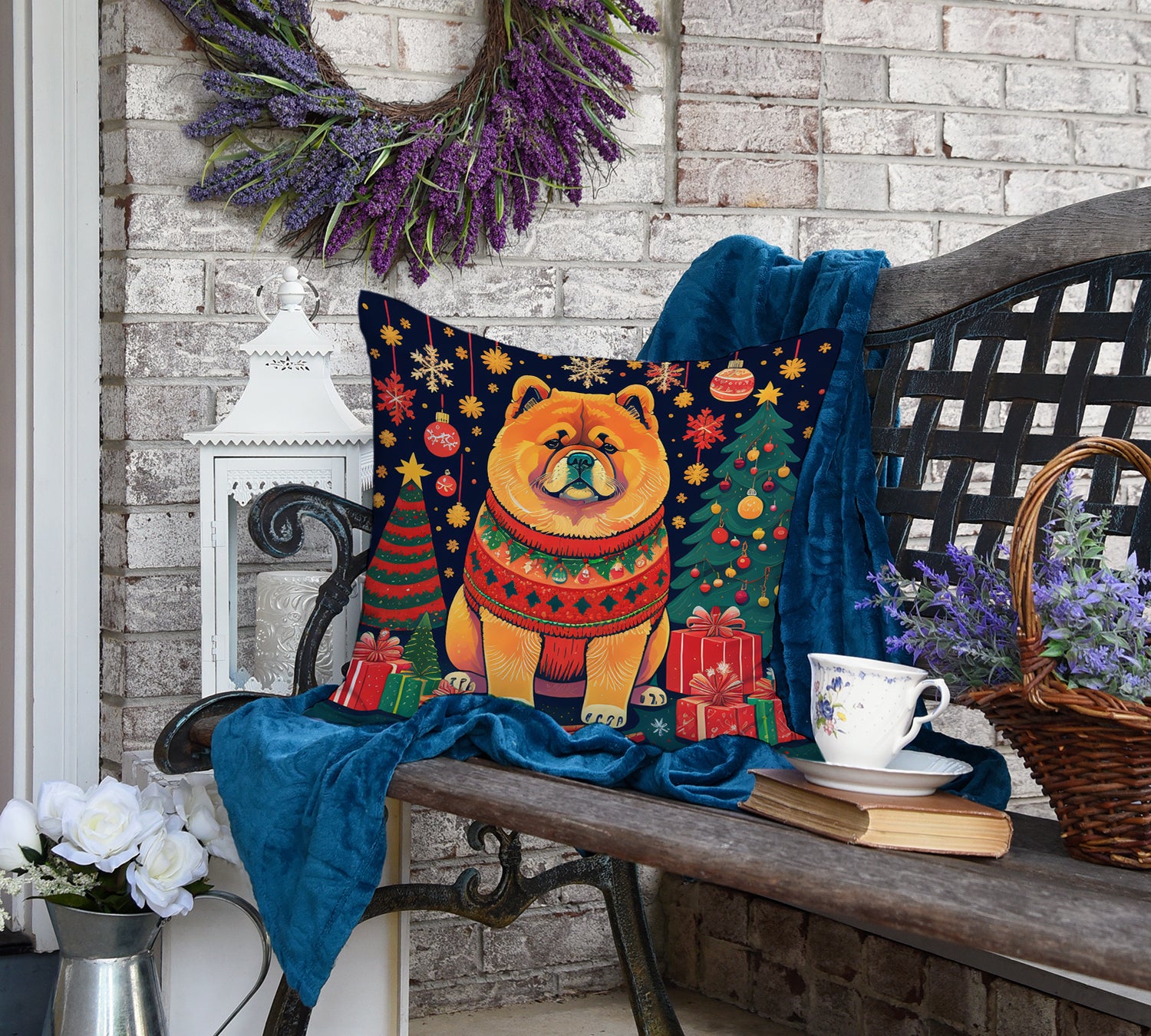 Throw Pillow featuring breed specific Chow Chow artwork. Celebrate Christmas with this Christmas Pillow. Revitalize your outdoor or indoor living space with Caroline's Treasures 18x18 Fabric Decorative Pillow. With a generously sized dimension of approximately 18 inches by 18 inches, this pillow makes a comfortable and aesthetic addition to any seating area. Made from a unique, water-resistant material developed by Caroline's Treasures, the pillow sham is 100% polyester fabric that's durable and ready to weather any condition. Its vibrant, full-color artwork will not fade over time as it is dyed with color-fast dyes. Whether you place it on your patio furniture, porch, veranda, or indoor couch, its soft canvas fabric ensures a cozy experience. The pillow is handcrafted in the United States, featuring a sham created from three pieces of fabric and a polyester insert for enduring shape and overstuffed comfort. Despite being robustly built to endure the outdoors, it is as soft and snug as your favorite indoor cushions. Please note, as all our pillows are handmade, sizes may vary slightly, adding to the charm of this unique decorative item.