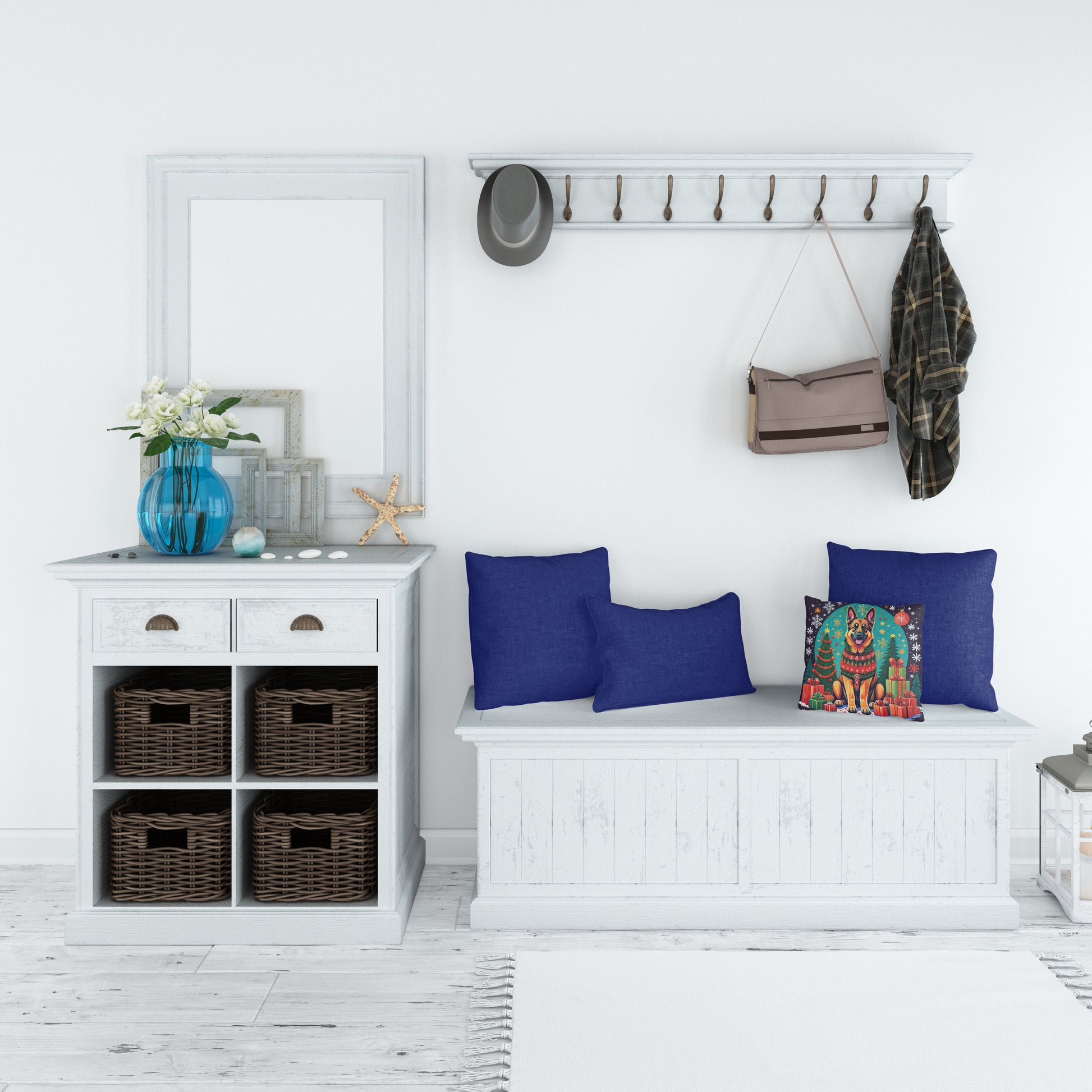 Throw Pillow featuring breed specific German Shepherd artwork. Celebrate Christmas with this Christmas Pillow. Add a touch of vibrancy and comfort to your outdoor seating with Caroline's Treasures Fabric Decorative Pillow. Measuring approximately 14 inches by 14 inches, this outdoor pillow is crafted to elevate the appeal of your patio furniture, infusing it with vivid color and artistic flair. The pillow includes a 100% Polyester Fabric sham filled with a quality pillow form to provide superior comfort. Innovatively made from our brand new material, specifically woven for its water resistance, this pillow is designed for durability. The soft canvas fabric offers versatility in use, fit for your indoor couch or your outdoor patio, porch, or veranda. The fabric is dyed with colorfast dyes built for resilience against weather conditions, ensuring the pillow retains its beauty over time. Constructed by sewing three fabric pieces to create a sham, the polyester insert is then nestled inside to form the pillow, resulting in an overstuffed pillow that maintains its shape. Both the sham and the pillow insert are proudly made in the United States. As the pillows are handcrafted, there may be minor variations in size, further enhancing their unique charm. Experience comfort in style with Caroline's Treasures Fabric Decorative Pillow.