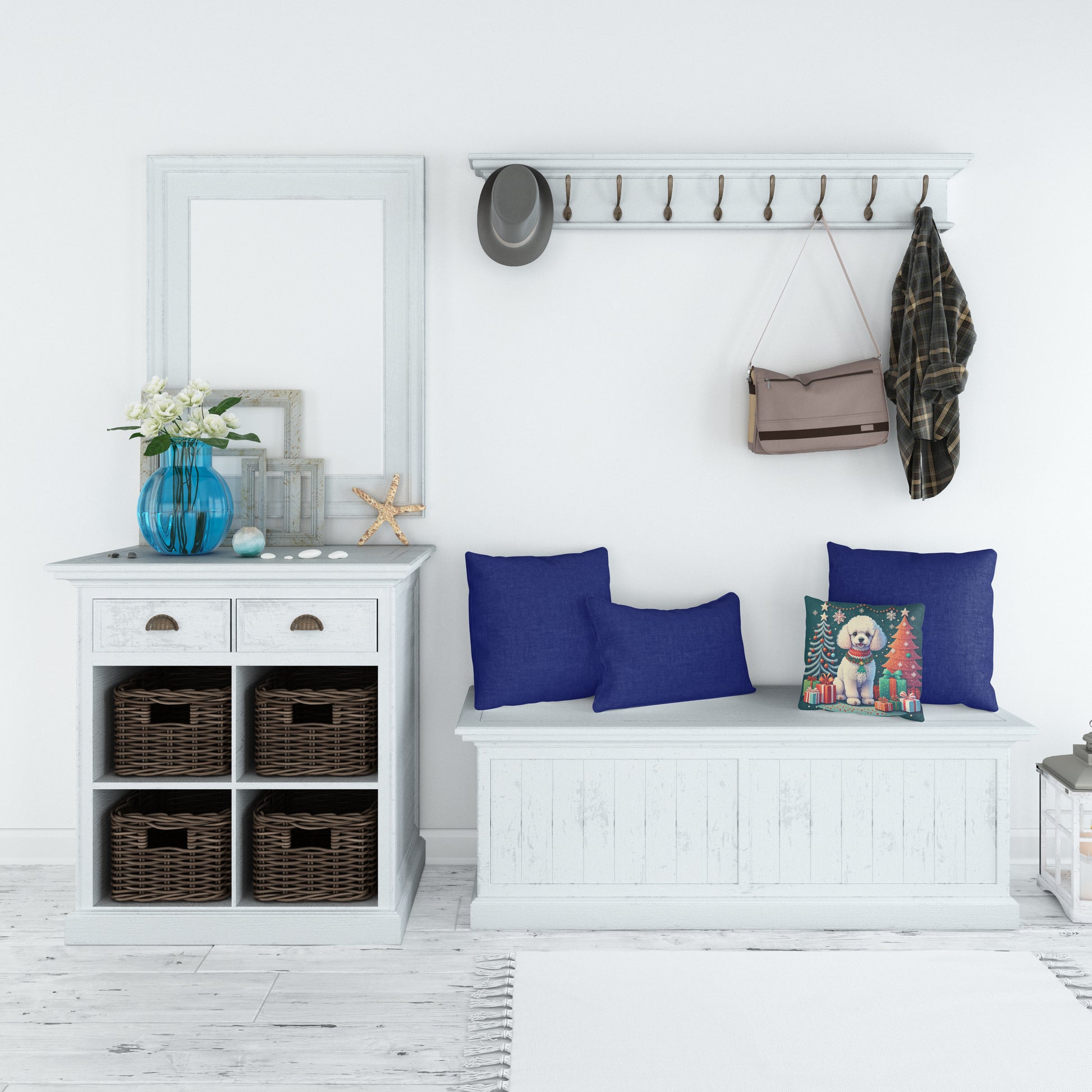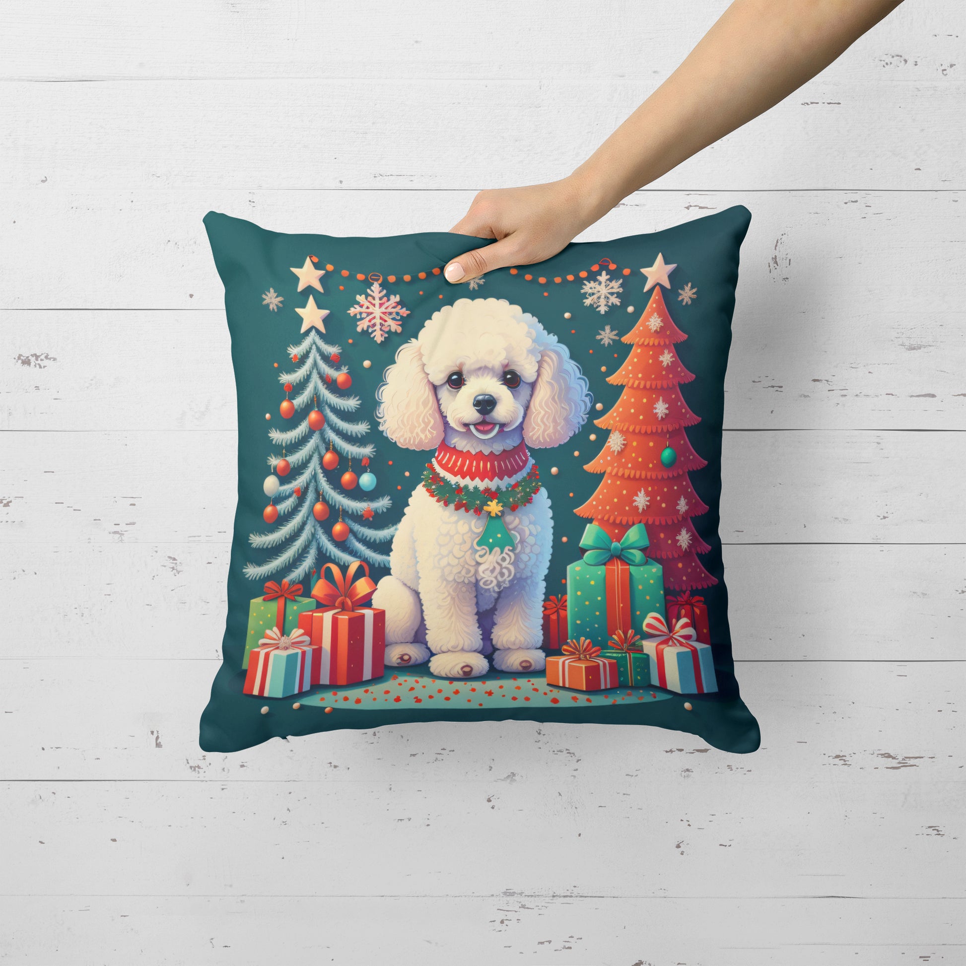 Throw Pillow featuring breed specific Poodle artwork. Celebrate Christmas with this Christmas Pillow. Add a touch of vibrancy and comfort to your outdoor seating with Caroline's Treasures Fabric Decorative Pillow. Measuring approximately 14 inches by 14 inches, this outdoor pillow is crafted to elevate the appeal of your patio furniture, infusing it with vivid color and artistic flair. The pillow includes a 100% Polyester Fabric sham filled with a quality pillow form to provide superior comfort. Innovatively made from our brand new material, specifically woven for its water resistance, this pillow is designed for durability. The soft canvas fabric offers versatility in use, fit for your indoor couch or your outdoor patio, porch, or veranda. The fabric is dyed with colorfast dyes built for resilience against weather conditions, ensuring the pillow retains its beauty over time. Constructed by sewing three fabric pieces to create a sham, the polyester insert is then nestled inside to form the pillow, resulting in an overstuffed pillow that maintains its shape. Both the sham and the pillow insert are proudly made in the United States. As the pillows are handcrafted, there may be minor variations in size, further enhancing their unique charm. Experience comfort in style with Caroline's Treasures Fabric Decorative Pillow.