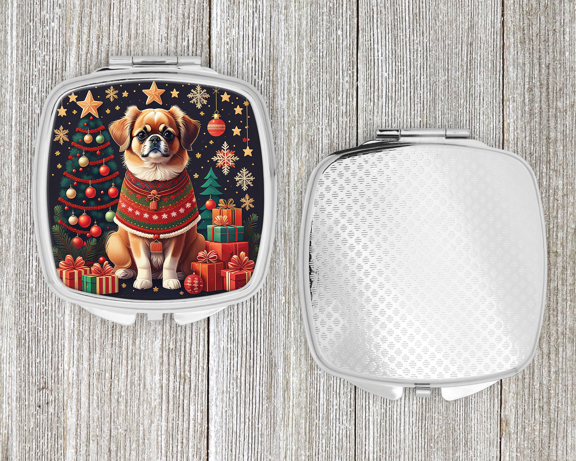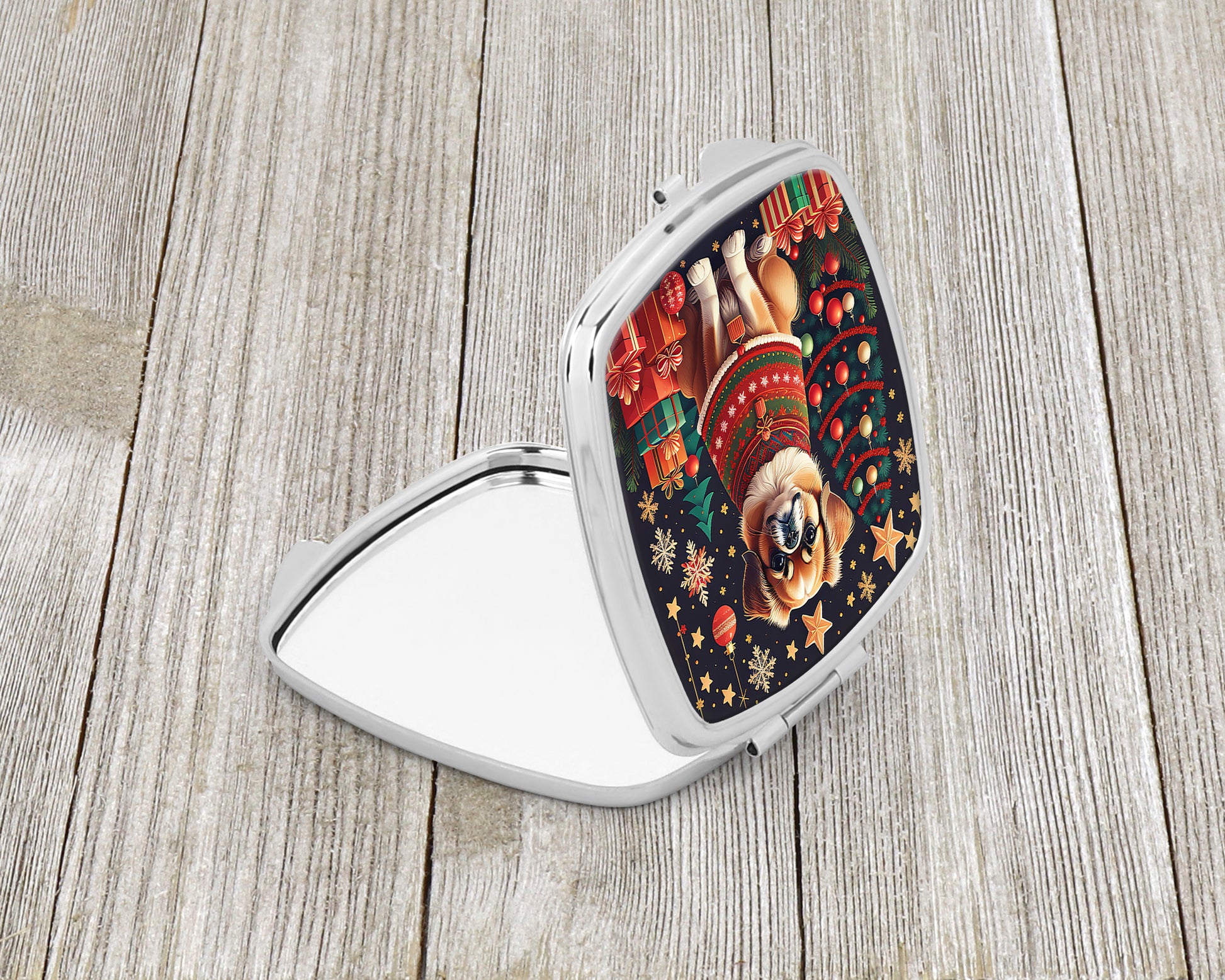 Compact Mirror featuring breed specific Tibetan Spaniel artwork. Celebrate Christmas with this Christmas Compact Mirror. Introducing our Square Compact Mirror, a blend of elegance, functionality, and compactness, perfect for on-the-go touch-ups. This Silvertone metal mirror, with dimensions of 2.75 inches x 3 inches x .3 inches, fits effortlessly into your purse, handbag, or pocket, ensuring that you can check your appearance anytime, anywhere. Our compact mirror stands out with its eye-catching artwork on the front, adding a dash of style to this practical accessory. It is more than just a mirror; it's a statement piece that reflects your personality and aesthetic. When opened, this compact reveals two mirrors inside, doubling your perspective for precise touch-ups. The Silvertone metal construction ensures durability while maintaining a lightweight feel, making it an ideal everyday carry item. Whether you're rushing to a meeting, prepping for a dinner date, or just need a quick check on your look, our Square Compact Mirror is your reliable companion. Experience the perfect blend of style and practicality with this must-have accessory.
