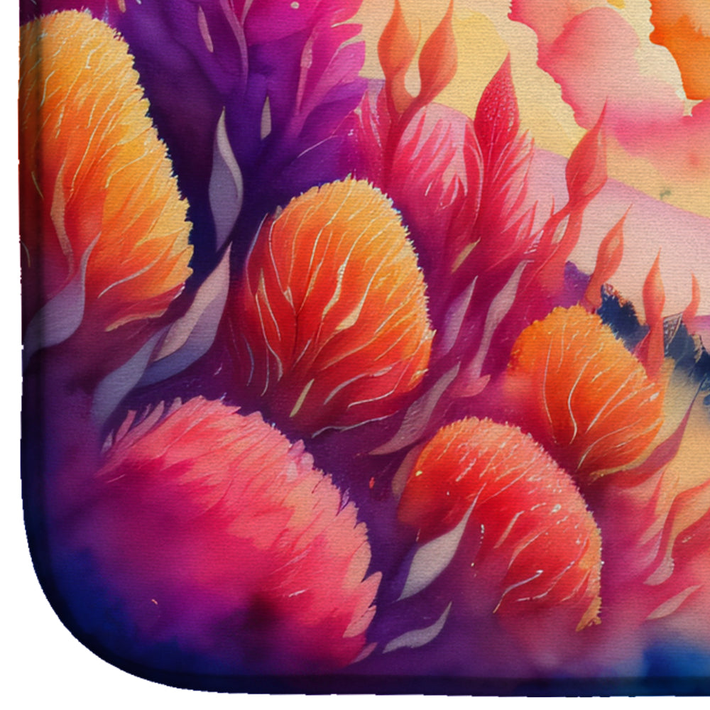 Say goodbye to messy countertops and soggy dish towels with our innovative dish drying mat. Our high-quality dish drying pad is designed to keep your countertops dry while offering a stylish and efficient solution. Whether you're air drying dishes, glasses, stemware, silverware, pots, pans, bottles, or even fruits and vegetables, our dish mat is the perfect choice. The 14 inches x 22 inches size fits most counters and dish drying racks, and the non-slip design ensures stability. Made with water-absorbent polyester and a polyurethane foam insert, our dish drying mat is not only functional but also durable. It's machine washable and printed in the USA for long-lasting use. The beautiful artwork adds flair to your kitchen decor, making it a perfect housewarming gift or present for any occasion. Upgrade your kitchen experience with our absorbent and versatile dish drying mat.