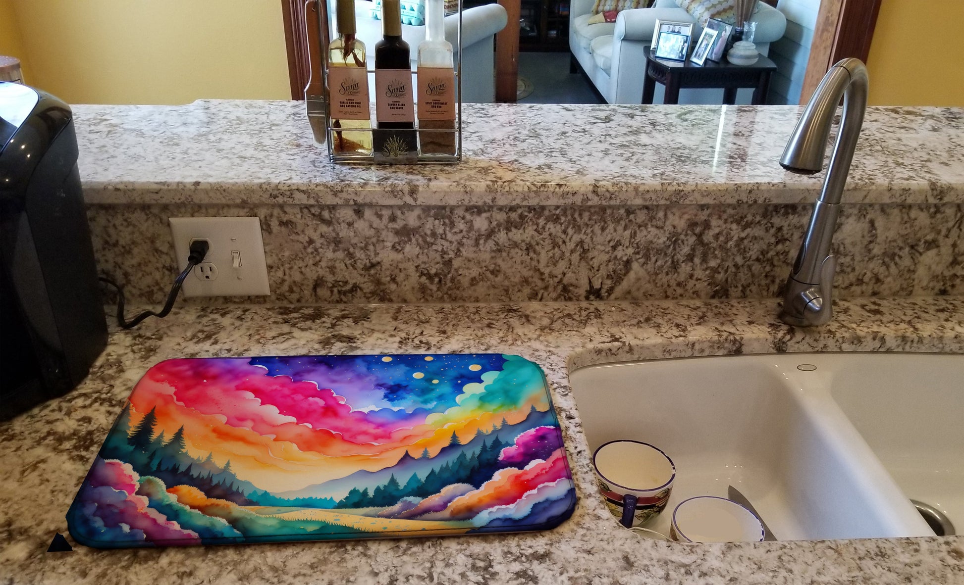 Say goodbye to messy countertops and soggy dish towels with our innovative dish drying mat. Our high-quality dish drying pad is designed to keep your countertops dry while offering a stylish and efficient solution. Whether you're air drying dishes, glasses, stemware, silverware, pots, pans, bottles, or even fruits and vegetables, our dish mat is the perfect choice. The 14 inches x 22 inches size fits most counters and dish drying racks, and the non-slip design ensures stability. Made with water-absorbent polyester and a polyurethane foam insert, our dish drying mat is not only functional but also durable. It's machine washable and printed in the USA for long-lasting use. The beautiful artwork adds flair to your kitchen decor, making it a perfect housewarming gift or present for any occasion. Upgrade your kitchen experience with our absorbent and versatile dish drying mat.