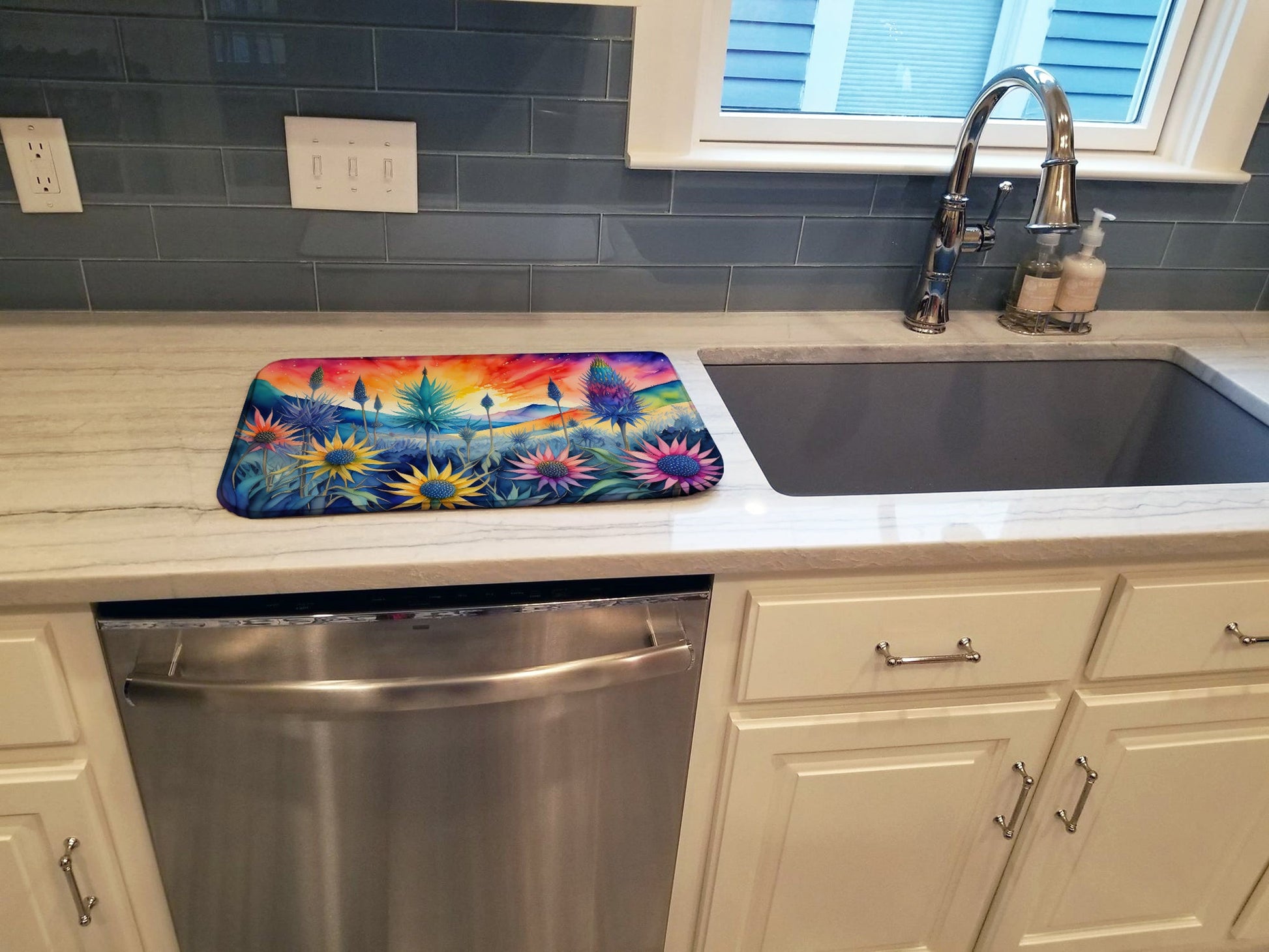 Say goodbye to messy countertops and soggy dish towels with our innovative dish drying mat. Our high-quality dish drying pad is designed to keep your countertops dry while offering a stylish and efficient solution. Whether you're air drying dishes, glasses, stemware, silverware, pots, pans, bottles, or even fruits and vegetables, our dish mat is the perfect choice. The 14 inches x 22 inches size fits most counters and dish drying racks, and the non-slip design ensures stability. Made with water-absorbent polyester and a polyurethane foam insert, our dish drying mat is not only functional but also durable. It's machine washable and printed in the USA for long-lasting use. The beautiful artwork adds flair to your kitchen decor, making it a perfect housewarming gift or present for any occasion. Upgrade your kitchen experience with our absorbent and versatile dish drying mat.