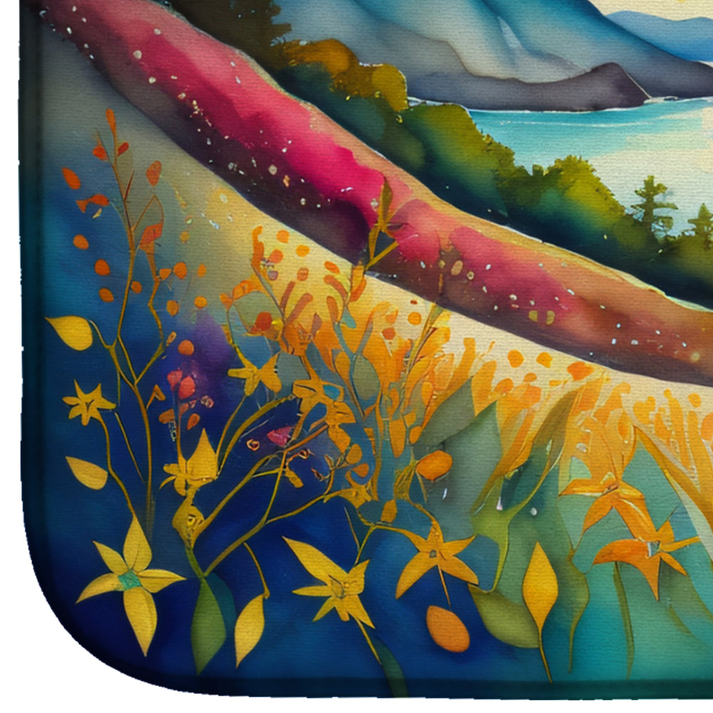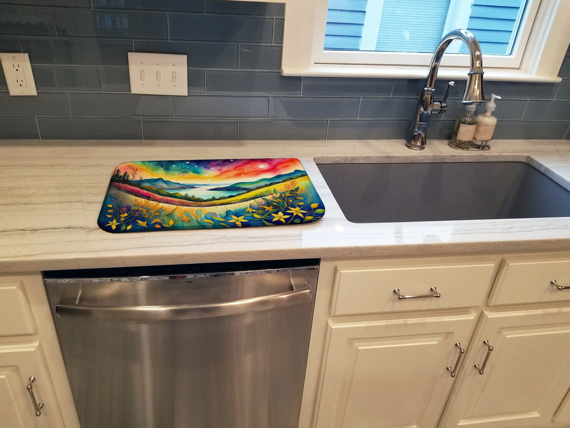 Say goodbye to messy countertops and soggy dish towels with our innovative dish drying mat. Our high-quality dish drying pad is designed to keep your countertops dry while offering a stylish and efficient solution. Whether you're air drying dishes, glasses, stemware, silverware, pots, pans, bottles, or even fruits and vegetables, our dish mat is the perfect choice. The 14 inches x 22 inches size fits most counters and dish drying racks, and the non-slip design ensures stability. Made with water-absorbent polyester and a polyurethane foam insert, our dish drying mat is not only functional but also durable. It's machine washable and printed in the USA for long-lasting use. The beautiful artwork adds flair to your kitchen decor, making it a perfect housewarming gift or present for any occasion. Upgrade your kitchen experience with our absorbent and versatile dish drying mat.
