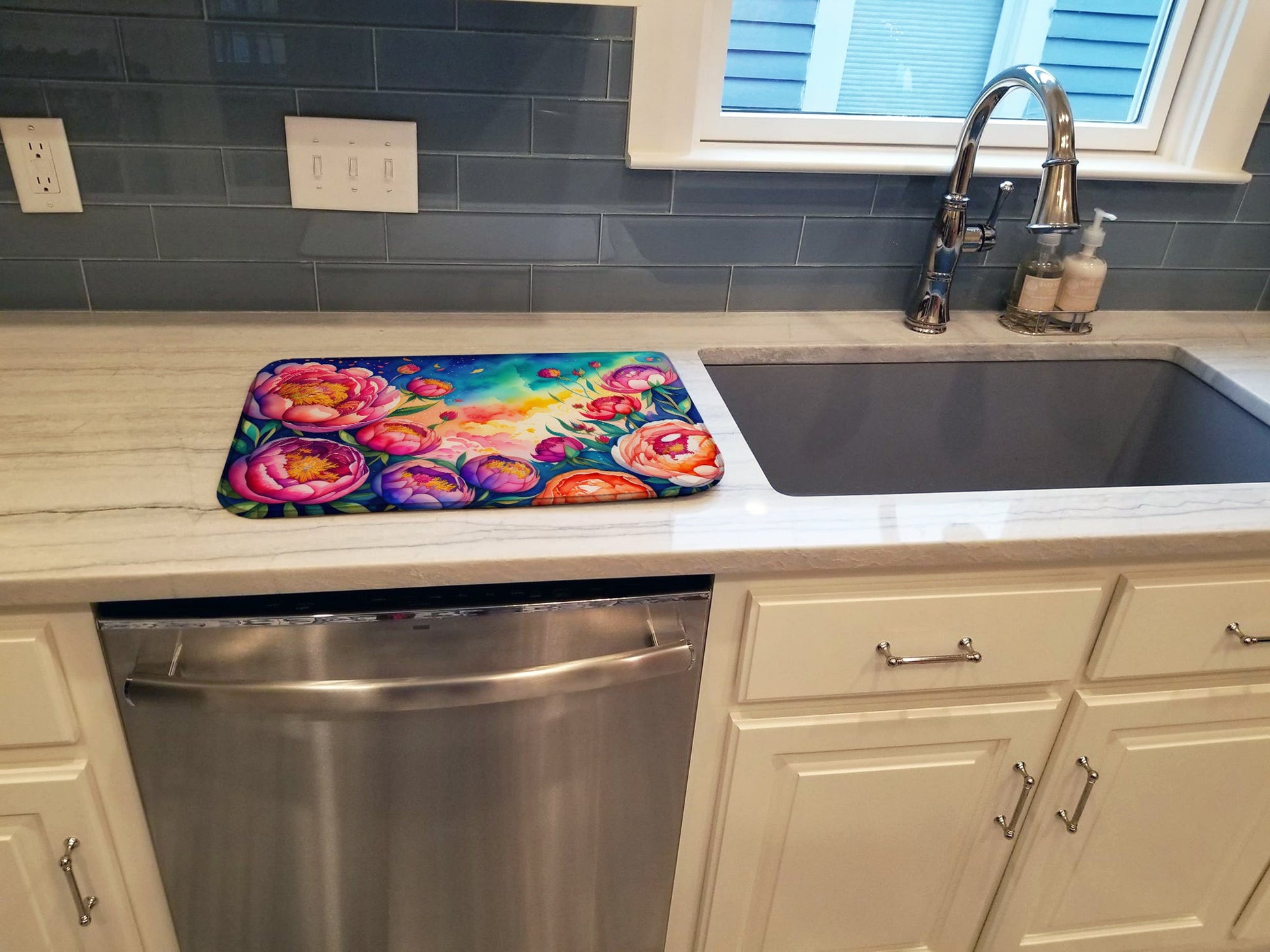 Peonies in Color Dish Drying Mat