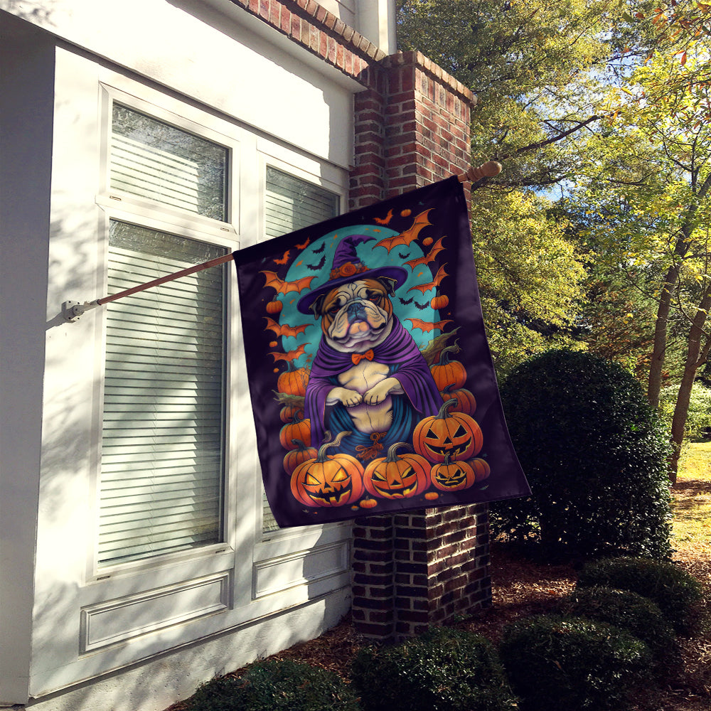 House Flag featuring breed specific English Bulldog artwork. Celebrate Halloween with this Halloween Large Flag. Presenting our Heavy Duty Polyester House Size Decorative Sleeve Pole Flag, a vibrant addition to enhance the aesthetic appeal of your home. This large decorative flag, measuring approximately 28 x 40 inches, offers ample coverage and visibility. Each flag is meticulously sewn and made individually, ensuring a unique piece that may slightly vary in size. It's a sleeve pole flag, designed to fit a standard decorative flag pole effortlessly. Please note that the flag pole and bracket are not included and should be purchased separately. What sets our flag apart is its dual-sided print. The design is mirrored on both sides of the fabric, allowing for uniform visibility regardless of the angle. Printed in full color, our flag showcases vibrant hues that truly stand out. To ensure lasting vibrancy and durability, the dyes are heat-set into the fabric. This ensures your flag remains bright and captivating through various weather conditions. Elevate the look of your home with our Heavy Duty Polyester House Size Decorative Sleeve Pole Flag!