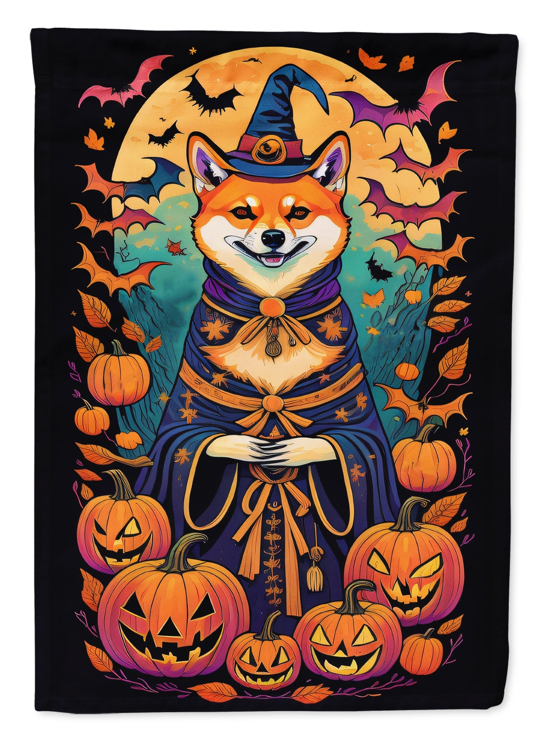 Shiba Inu Witchy Halloween House Flag