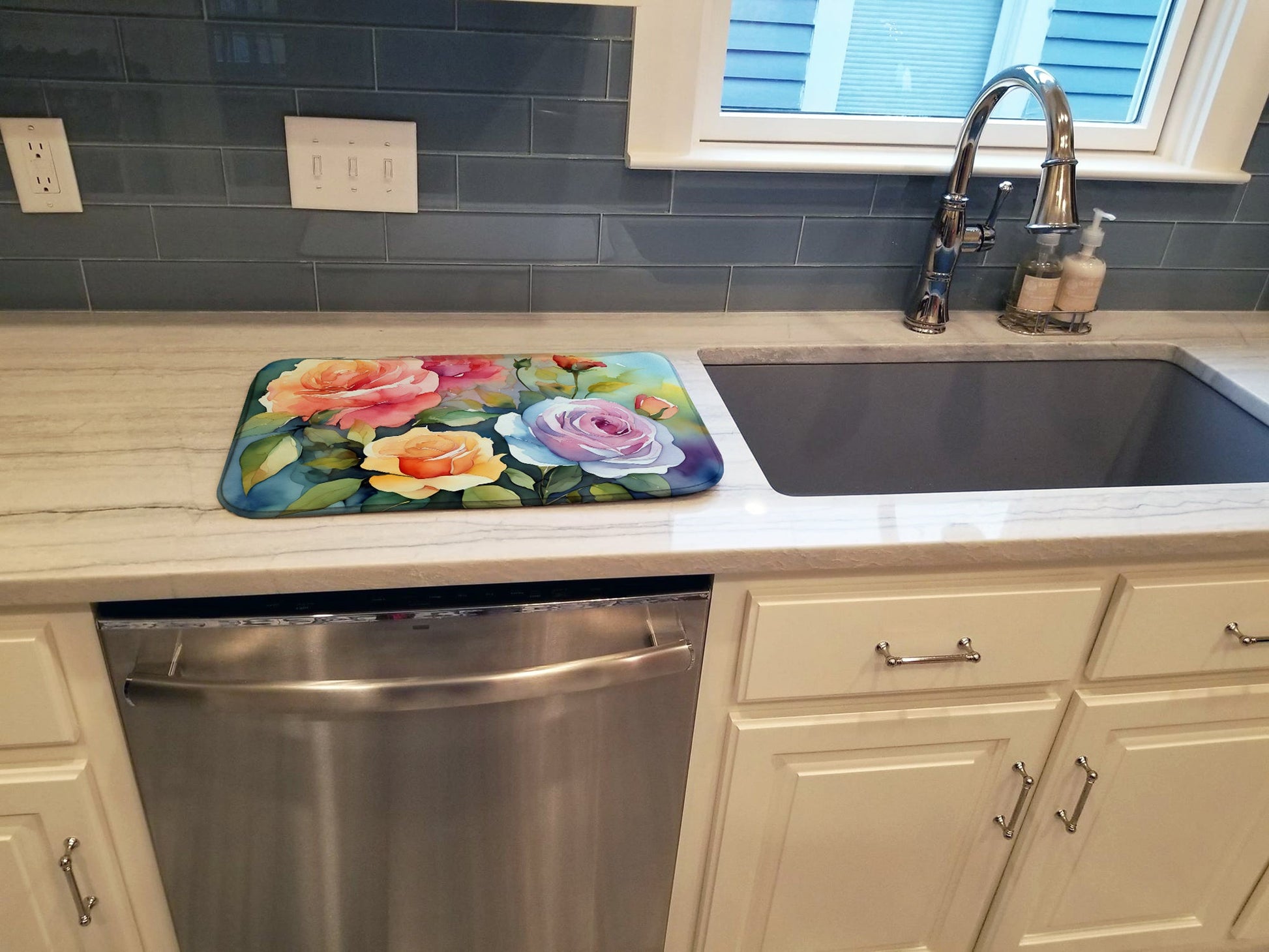 Roses in Watercolor Dish Drying Mat