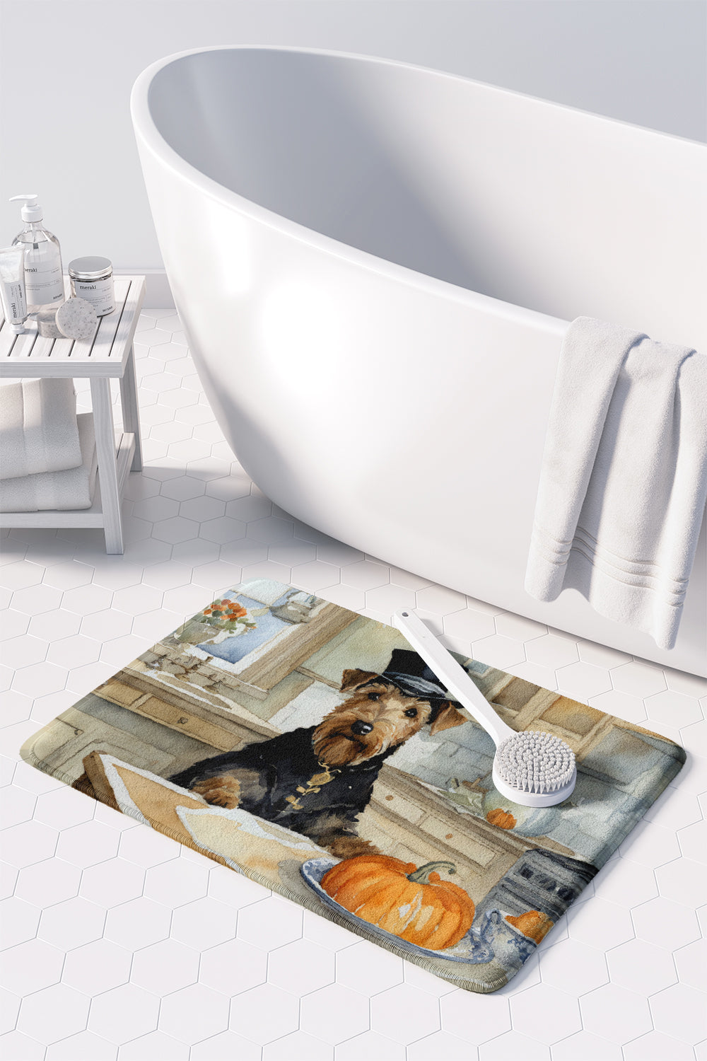 Memory Foam Kitchen Mat featuring breed specific Airedale Terrier artwork. Celebrate Halloween with this Halloween Floor Mat. Transform your floor into a work of art with Caroline's Treasures' Memory Foam Mat. This mat offers not only a stunning visual appeal but also a luxurious, plush feel that's incredibly comfortable to the touch. It's a versatile, machine-washable mat designed for both bath and kitchen use, ensuring you experience the best in comfort and convenience. Care Instructions: Maintaining this memory foam mat is a breeze. Simply follow the care instructions on the product tag. It's recommended to wash in cold water and dry on a low-temperature setting in the dryer. This ensures the mat retains its quality and longevity, allowing you to enjoy its beauty and comfort for a long time. Caroline's Treasures' Memory Foam Mat Machine Washable is the perfect blend of artistry, comfort, and practicality, making it a standout addition to any space. Upgrade your home decor with this versatile and stylish mat today.