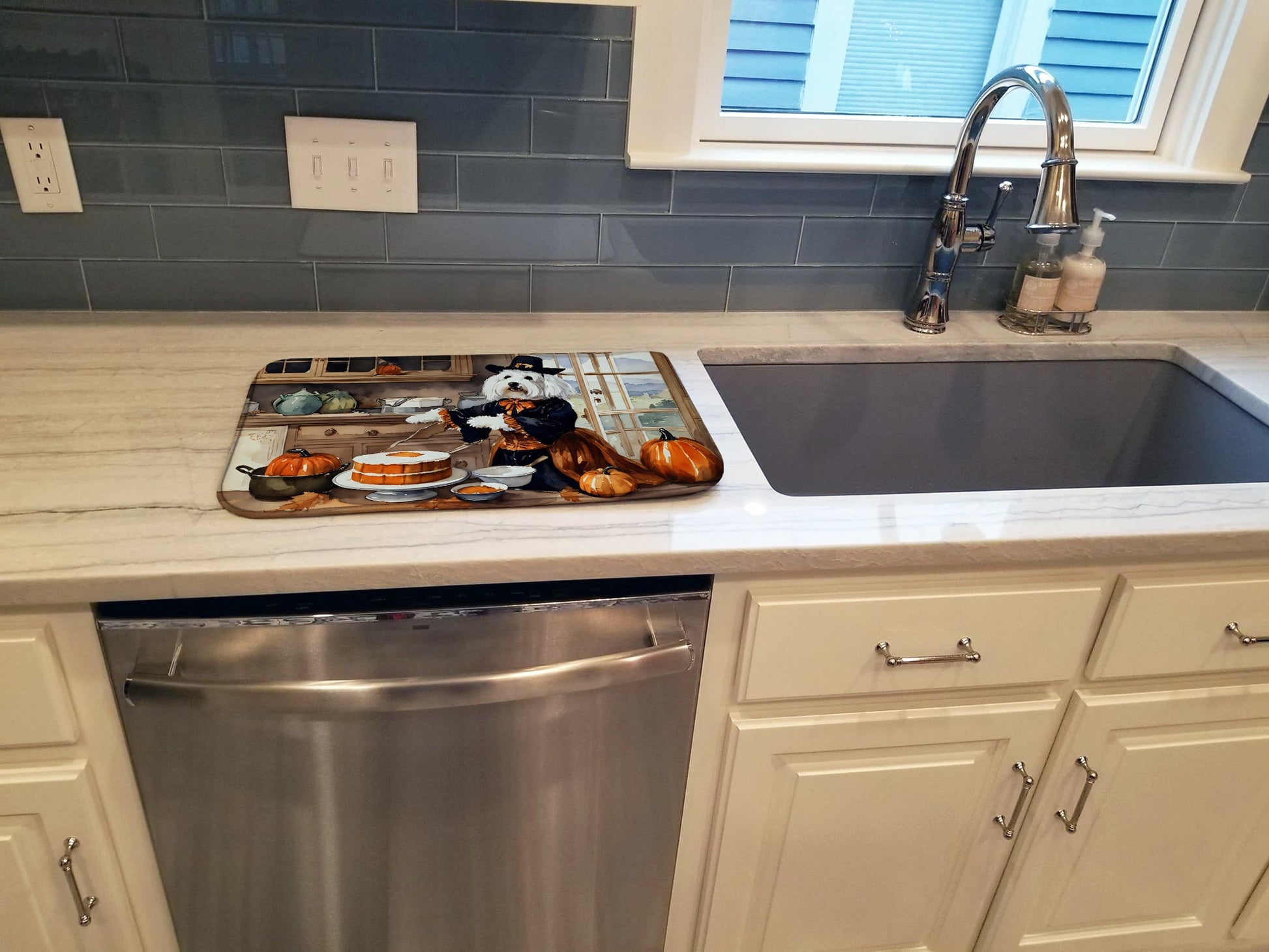 Coton De Tulear Fall Kitchen Pumpkins Dish Drying Mat