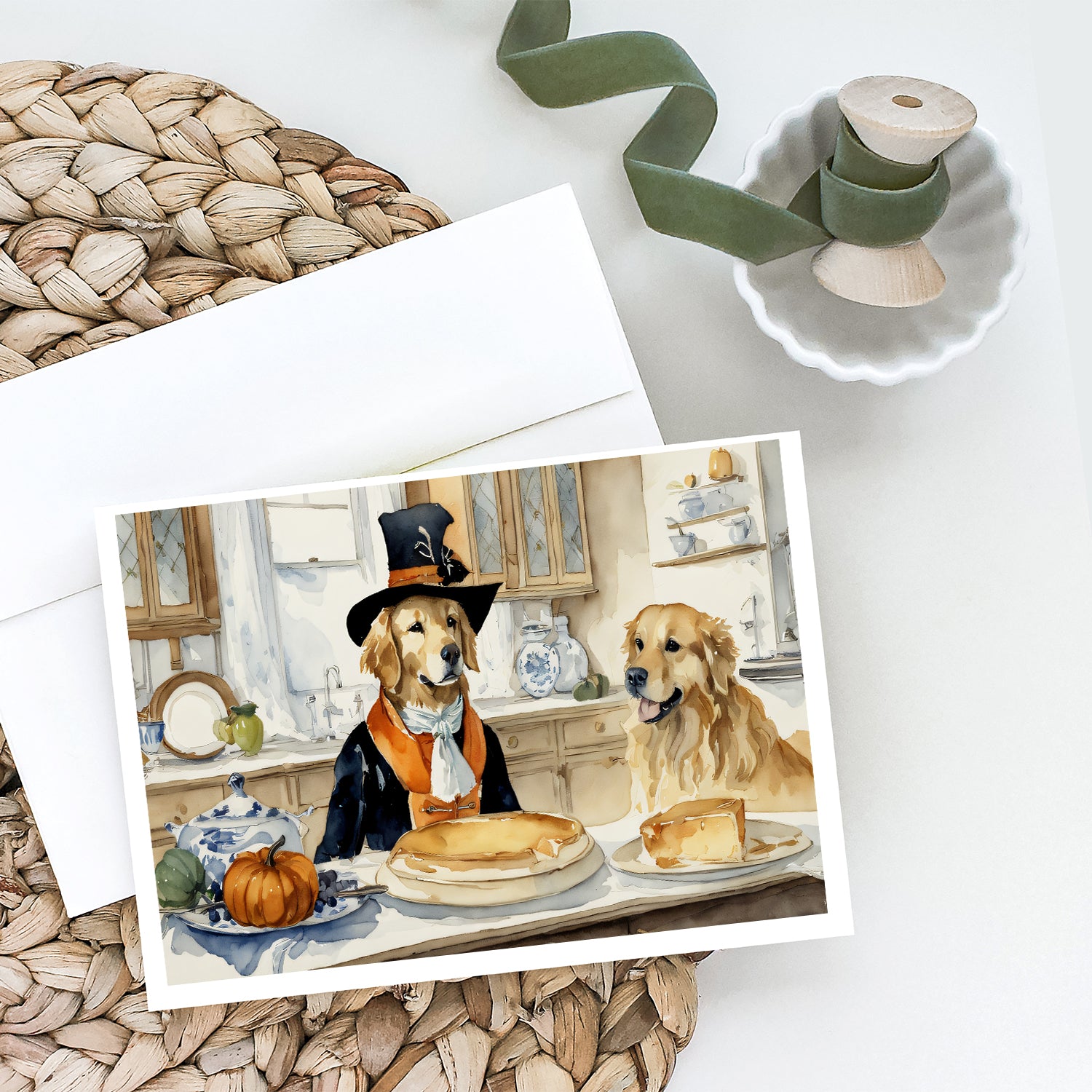 Golden Retriever Fall Kitchen Pumpkins Greeting Cards and Envelopes Pack of 8