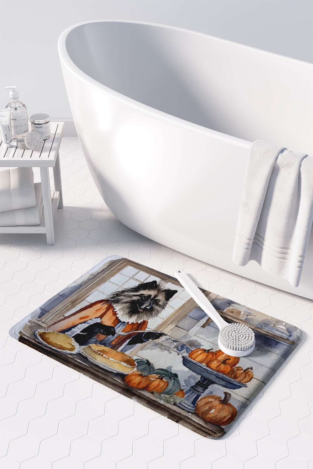 Memory Foam Kitchen Mat featuring breed specific Keeshond artwork. Celebrate Halloween with this Halloween Floor Mat. Transform your floor into a work of art with Caroline's Treasures' Memory Foam Mat. This mat offers not only a stunning visual appeal but also a luxurious, plush feel that's incredibly comfortable to the touch. It's a versatile, machine-washable mat designed for both bath and kitchen use, ensuring you experience the best in comfort and convenience. Care Instructions: Maintaining this memory foam mat is a breeze. Simply follow the care instructions on the product tag. It's recommended to wash in cold water and dry on a low-temperature setting in the dryer. This ensures the mat retains its quality and longevity, allowing you to enjoy its beauty and comfort for a long time. Caroline's Treasures' Memory Foam Mat Machine Washable is the perfect blend of artistry, comfort, and practicality, making it a standout addition to any space. Upgrade your home decor with this versatile and stylish mat today.