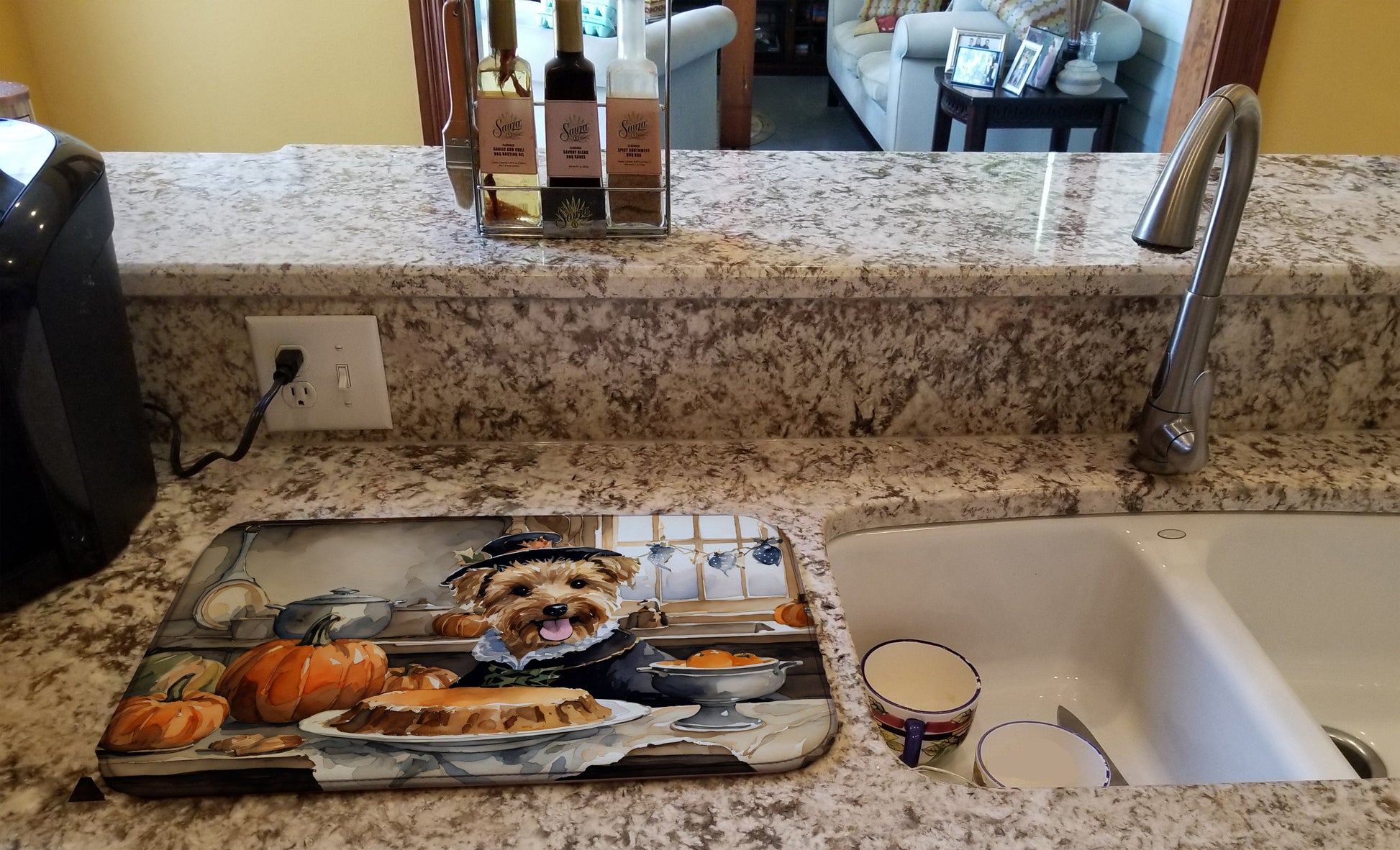 Lakeland Terrier Fall Kitchen Pumpkins Dish Drying Mat