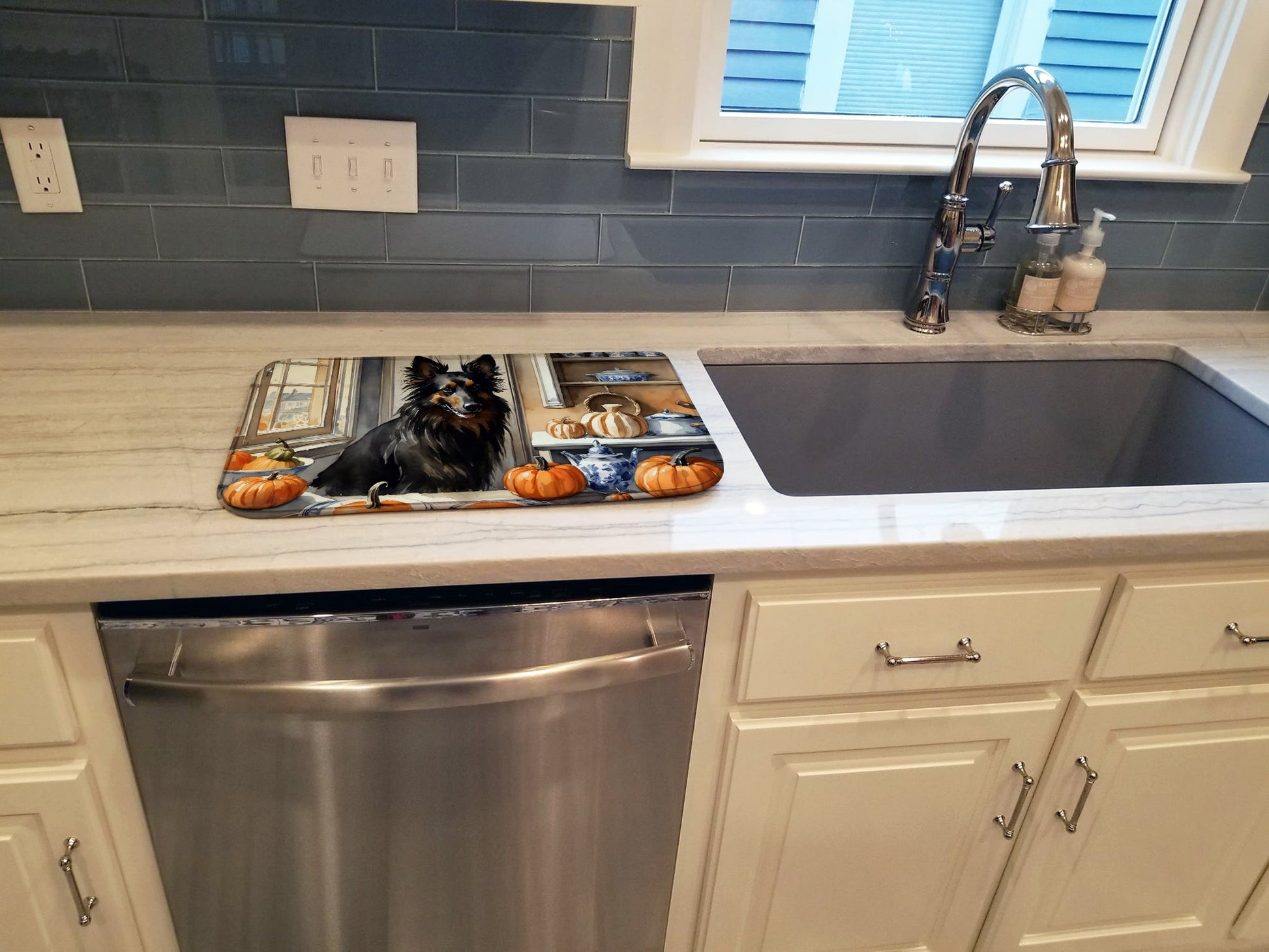 Belgian Sheepdog Fall Kitchen Pumpkins Dish Drying Mat