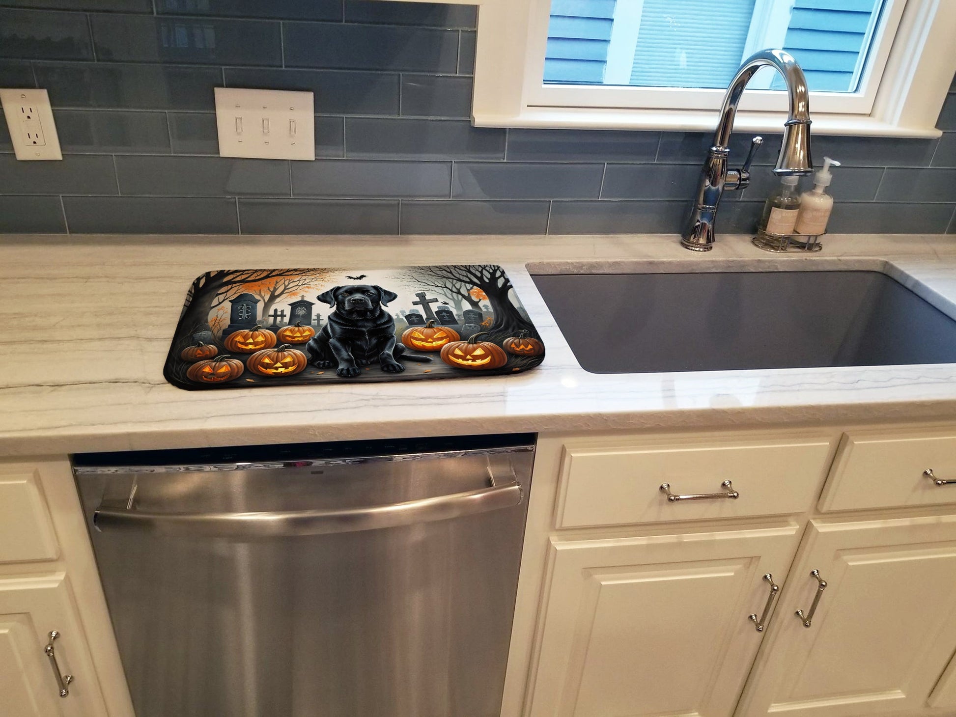 Black Labrador Retriever Spooky Halloween Dish Drying Mat