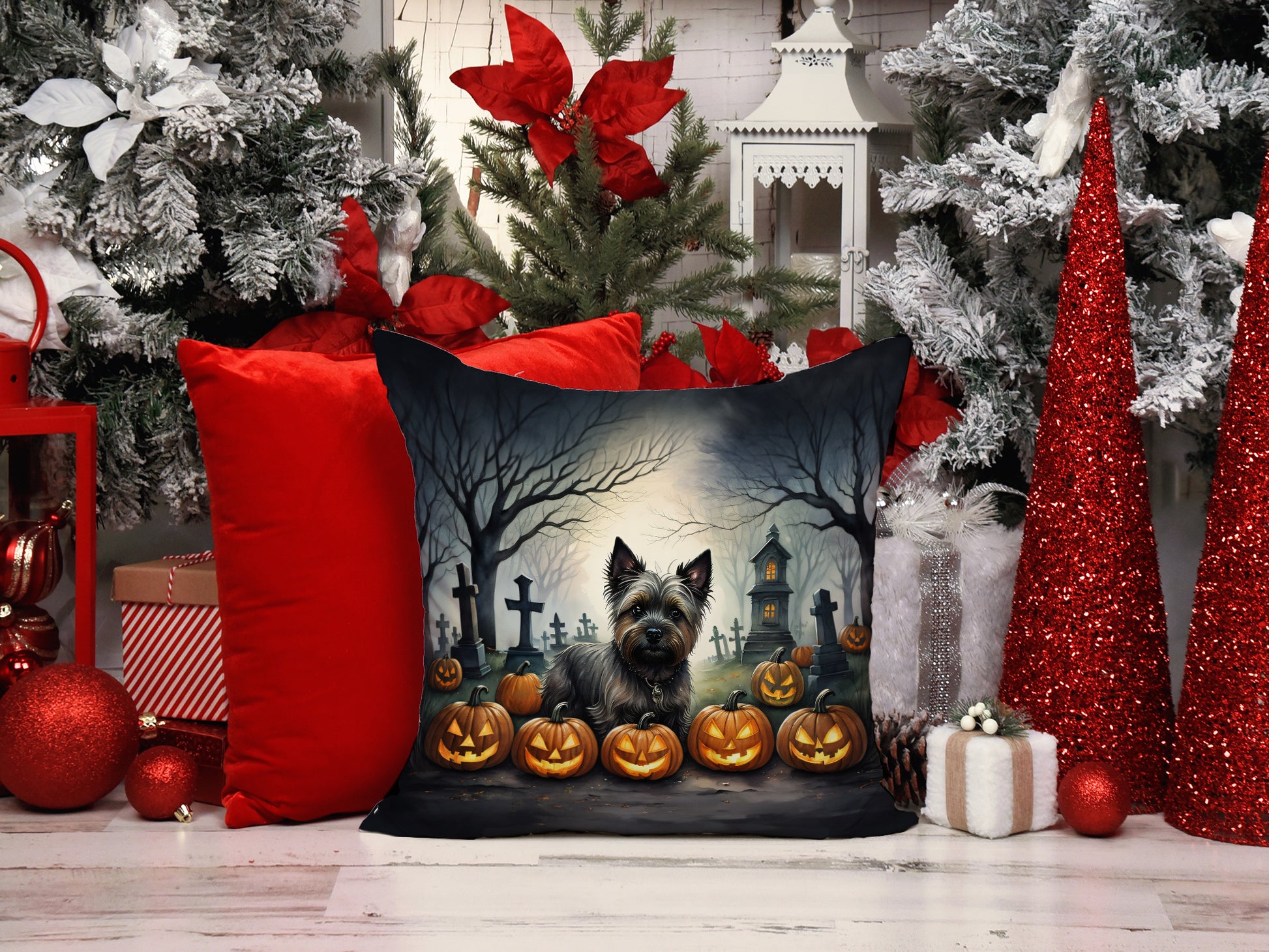 Cairn Terrier Spooky Halloween Throw Pillow