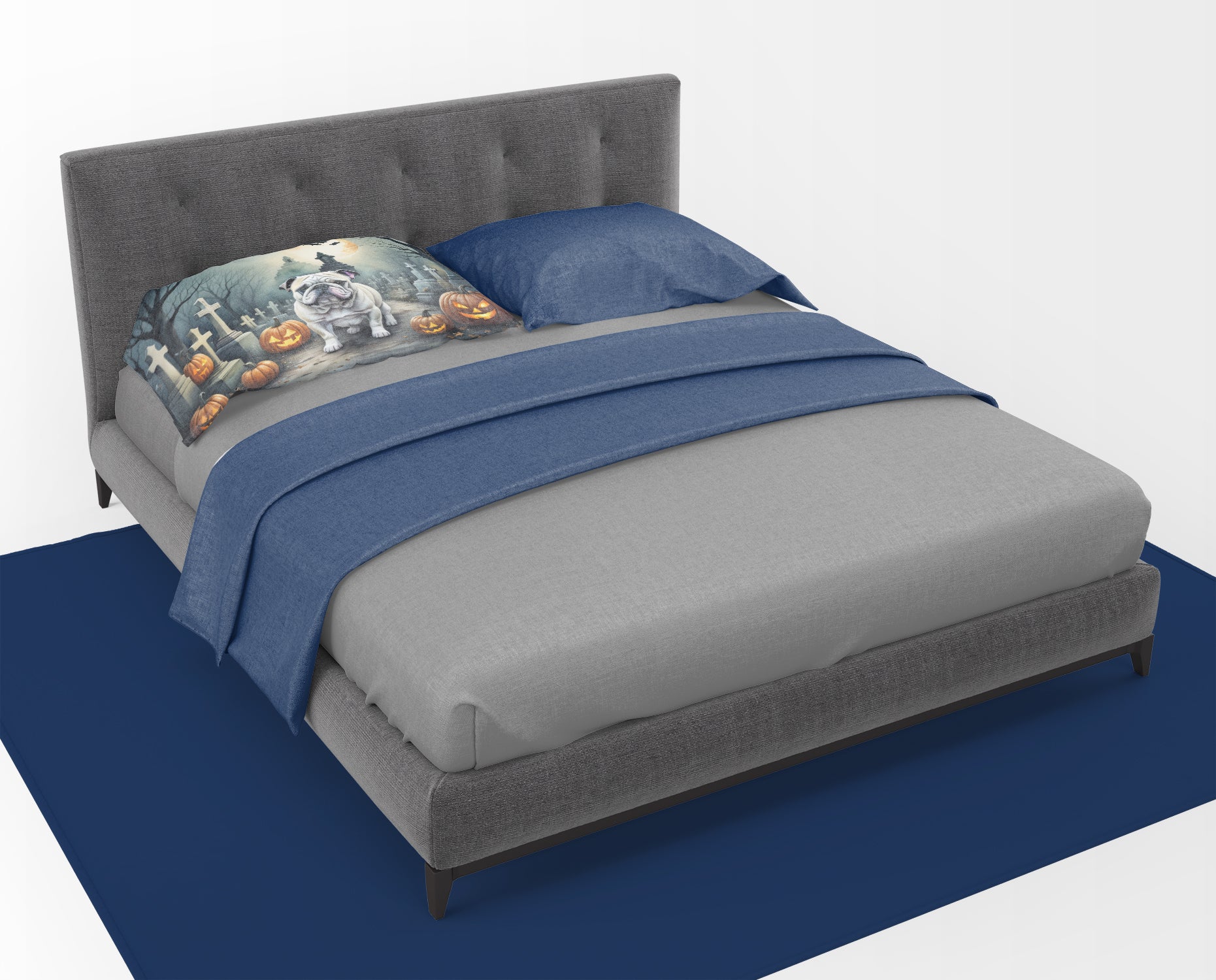 Standard Pillowcase featuring breed specific English Bulldog artwork. Celebrate Halloween with this Halloween Pillowcase. Experience an upgrade in your sleeping comfort with our Fabric Standard Pillowcase, designed to balance style, comfort, and practicality. Showcasing vibrant artwork on the front and a standard white on the back, this pillowcase is more than a functional item—it's an expression of your personal style. Crafted from premium moisture-wicking material, our pillowcase ensures a pleasant sleeping experience. The breathable performance fabric allows for excellent air circulation, keeping you cool and comfortable throughout the night while also demonstrating exceptional quality. This pillowcase, measuring 30 x 20.5 inches with a slender 0.15 inch thickness, and weighing only 0.25 lbs, fits a standard pillow perfectly. Maintaining our pillowcase is hassle-free. It requires no ironing—simply wash in cold water and dry at medium heat. Bring art and luxury into your bedroom with our Fabric Standard Pillowcase. Its unique design and top-tier fabric contribute to a relaxing and rejuvenating sleep experience. Brighten your bedroom decor while enhancing your sleep with our high-performance pillowcase.