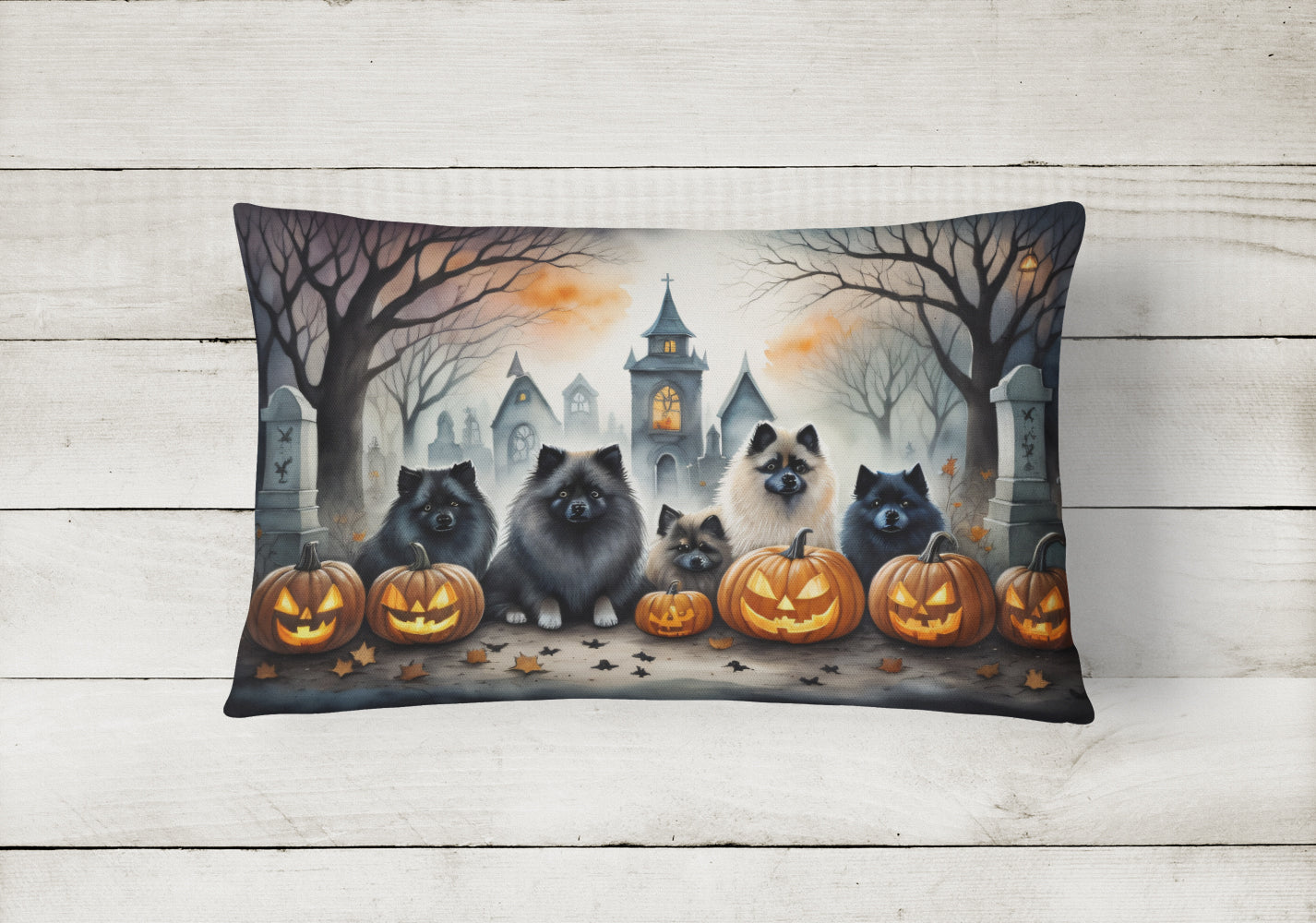Throw Pillow featuring breed specific Keeshond artwork. Celebrate Halloween with this Halloween Pillow. Embrace the fusion of comfort and style with Caroline's Treasures Fabric Decorative Pillow. This 12x16 inch outdoor pillow is designed to complement your patio furniture, adding a splash of color and artistry to your outdoor setting. Constructed with a 100% Polyester Fabric pillow sham filled with a plush pillow form, this cushion is as comfortable as it is durable. Our outdoor pillow utilizes a novel fabric, meticulously woven for enhanced water resistance. This soft canvas material is equally suited for your indoor couch as well as outdoor settings such as the patio, porch, or veranda. To ensure enduring vibrance, we employ colorfast dyes resistant to fading even when subjected to weather elements. The making of this pillow involves the delicate sewing together of three fabric pieces to create a sham, into which a polyester insert is carefully placed. The result is an overstuffed pillow that tenaciously holds its shape. With both the sham and the pillow insert crafted in the United States, these handmade pillows are a testament to superior local craftsmanship. Note that as these pillows are handmade, sizes may slightly vary, enhancing their unique appeal. Enjoy comfort in style with Caroline's Treasures Fabric Decorative Pillow.