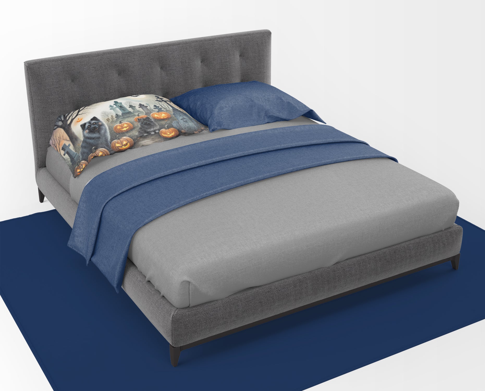 Standard Pillowcase featuring breed specific Keeshond artwork. Celebrate Halloween with this Halloween Pillowcase. Experience an upgrade in your sleeping comfort with our Fabric Standard Pillowcase, designed to balance style, comfort, and practicality. Showcasing vibrant artwork on the front and a standard white on the back, this pillowcase is more than a functional item—it's an expression of your personal style. Crafted from premium moisture-wicking material, our pillowcase ensures a pleasant sleeping experience. The breathable performance fabric allows for excellent air circulation, keeping you cool and comfortable throughout the night while also demonstrating exceptional quality. This pillowcase, measuring 30 x 20.5 inches with a slender 0.15 inch thickness, and weighing only 0.25 lbs, fits a standard pillow perfectly. Maintaining our pillowcase is hassle-free. It requires no ironing—simply wash in cold water and dry at medium heat. Bring art and luxury into your bedroom with our Fabric Standard Pillowcase. Its unique design and top-tier fabric contribute to a relaxing and rejuvenating sleep experience. Brighten your bedroom decor while enhancing your sleep with our high-performance pillowcase.