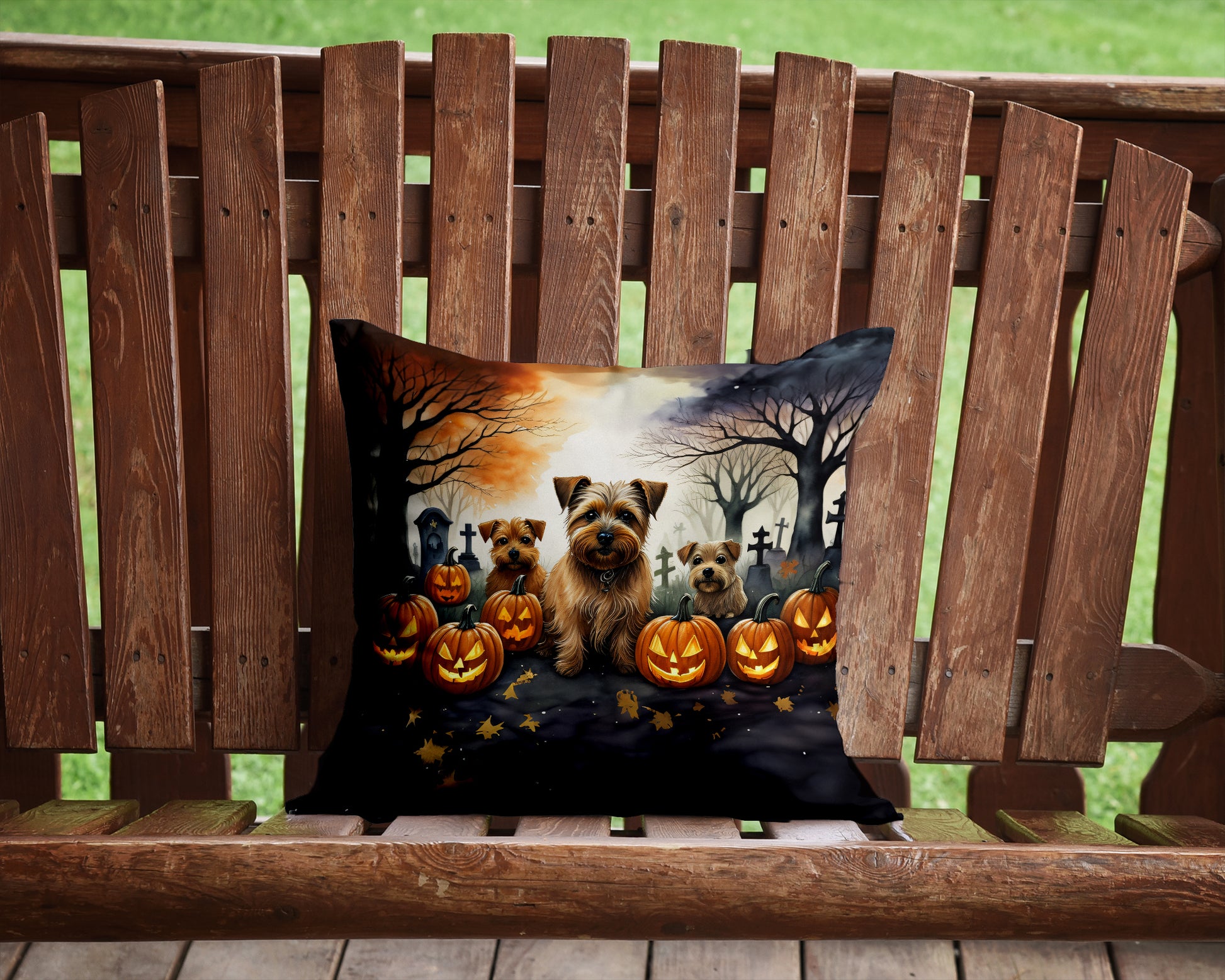 Throw Pillow featuring breed specific Norfolk Terrier artwork. Celebrate Halloween with this Halloween Pillow. Add a touch of vibrancy and comfort to your outdoor seating with Caroline's Treasures Fabric Decorative Pillow. Measuring approximately 14 inches by 14 inches, this outdoor pillow is crafted to elevate the appeal of your patio furniture, infusing it with vivid color and artistic flair. The pillow includes a 100% Polyester Fabric sham filled with a quality pillow form to provide superior comfort. Innovatively made from our brand new material, specifically woven for its water resistance, this pillow is designed for durability. The soft canvas fabric offers versatility in use, fit for your indoor couch or your outdoor patio, porch, or veranda. The fabric is dyed with colorfast dyes built for resilience against weather conditions, ensuring the pillow retains its beauty over time. Constructed by sewing three fabric pieces to create a sham, the polyester insert is then nestled inside to form the pillow, resulting in an overstuffed pillow that maintains its shape. Both the sham and the pillow insert are proudly made in the United States. As the pillows are handcrafted, there may be minor variations in size, further enhancing their unique charm. Experience comfort in style with Caroline's Treasures Fabric Decorative Pillow.