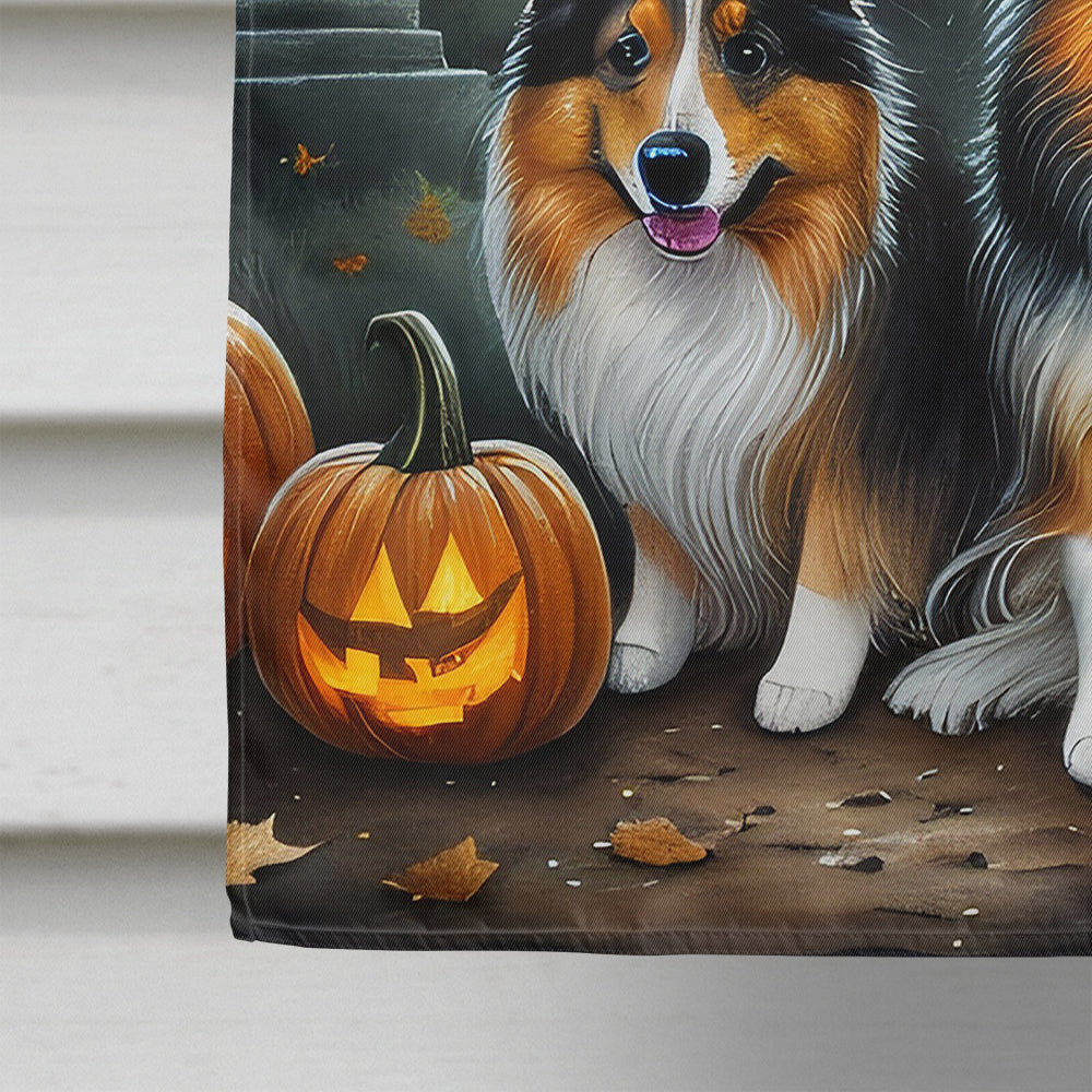 House Flag featuring breed specific Sheltie artwork. Celebrate Halloween with this Halloween Large Flag. Presenting our Heavy Duty Polyester House Size Decorative Sleeve Pole Flag, a vibrant addition to enhance the aesthetic appeal of your home. This large decorative flag, measuring approximately 28 x 40 inches, offers ample coverage and visibility. Each flag is meticulously sewn and made individually, ensuring a unique piece that may slightly vary in size. It's a sleeve pole flag, designed to fit a standard decorative flag pole effortlessly. Please note that the flag pole and bracket are not included and should be purchased separately. What sets our flag apart is its dual-sided print. The design is mirrored on both sides of the fabric, allowing for uniform visibility regardless of the angle. Printed in full color, our flag showcases vibrant hues that truly stand out. To ensure lasting vibrancy and durability, the dyes are heat-set into the fabric. This ensures your flag remains bright and captivating through various weather conditions. Elevate the look of your home with our Heavy Duty Polyester House Size Decorative Sleeve Pole Flag!