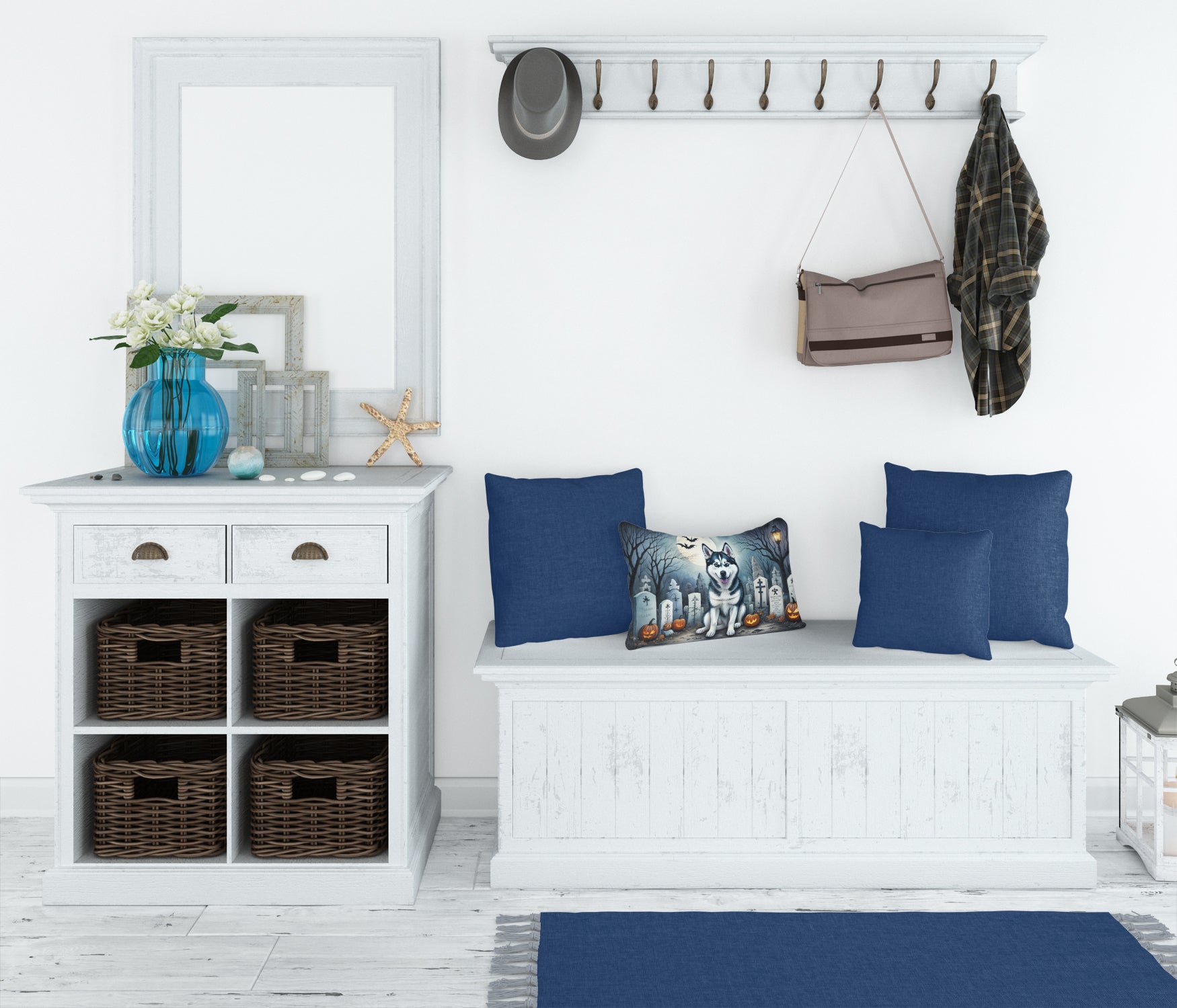 Throw Pillow featuring breed specific Siberian Husky artwork. Celebrate Halloween with this Halloween Pillow. Embrace the fusion of comfort and style with Caroline's Treasures Fabric Decorative Pillow. This 12x16 inch outdoor pillow is designed to complement your patio furniture, adding a splash of color and artistry to your outdoor setting. Constructed with a 100% Polyester Fabric pillow sham filled with a plush pillow form, this cushion is as comfortable as it is durable. Our outdoor pillow utilizes a novel fabric, meticulously woven for enhanced water resistance. This soft canvas material is equally suited for your indoor couch as well as outdoor settings such as the patio, porch, or veranda. To ensure enduring vibrance, we employ colorfast dyes resistant to fading even when subjected to weather elements. The making of this pillow involves the delicate sewing together of three fabric pieces to create a sham, into which a polyester insert is carefully placed. The result is an overstuffed pillow that tenaciously holds its shape. With both the sham and the pillow insert crafted in the United States, these handmade pillows are a testament to superior local craftsmanship. Note that as these pillows are handmade, sizes may slightly vary, enhancing their unique appeal. Enjoy comfort in style with Caroline's Treasures Fabric Decorative Pillow.