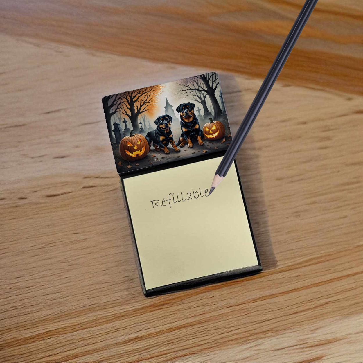 Sticky Note Holder featuring breed specific Rottweiler artwork. Celebrate Halloween with this Halloween Sticky Note Holder. Add a touch of creativity and flair to your desk with the Decorative Sticky Note Holder from Caroline's Treasures. This uniquely designed sticky note dispenser will not only keep your notes in one place but also add an artistic element to your workspace. The top of the holder features beautiful artwork that is sure to catch the eye. Crafted for convenience, this sticky note holder comes with a small pad of 3-inch x 3-inch sticky notes at the bottom. The holder is designed for easy refilling; simply remove the last sheet of a new sticky note pad and stick it onto the board. This feature ensures you will always have sticky notes at your disposal. This Sticky Note Holder makes a perfect gift. Be it for your colleagues at work, your Facebook friends, or even your dog groomer or hairdresser, this versatile product fits the bill. You can use it for making grocery lists, leaving notes for loved ones, or for jotting down important reminders. The bottom board is rigid and can be magnetized by adding a business card size magnet to the back (sold separately). This makes it even more versatile, allowing you to place it on a refrigerator or any other magnetic surface. With this Sticky Note Holder, you're not only organizing your notes, but also personalizing your space.