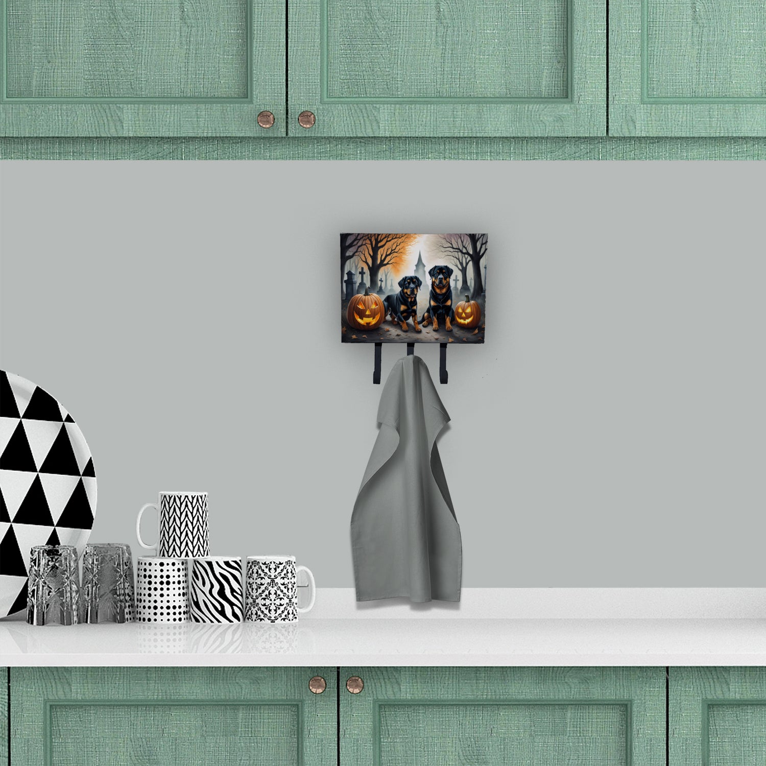Leash or Key Holder featuring breed specific Rottweiler artwork. Celebrate Halloween with this Halloween Wall Hook. Transform your home or office's organization with the Caroline's Treasures Triple Leash or Key Holder. Offering versatility and style, this triple hook holder is perfect for holding keys, leashes, or just about any other small items you need to keep at hand. Crafted with a hardboard tile mounted to a metal rectangle, this holder's structure speaks of durability and reliability. Each hook hangs down about 2.5 inches from the base, providing ample space for hanging your essentials. Despite its robustness, this triple hook holder remains simple to install. It comes with a 1.5-inch long hanger attached to the metal plate, ensuring easy installation with a screw or paneling nail. This holder, measuring 6 x 2 x 9 inches and weighing only 1 lb, is a compact and lightweight solution to your storage needs. Ideal for home or office use, the Caroline's Treasures Triple Leash or Key Holder enhances organization while adding a touch of sophistication to your space.