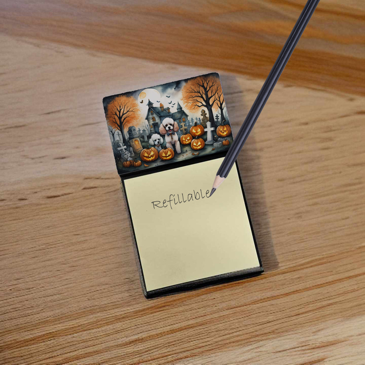 Sticky Note Holder featuring breed specific Poodle artwork. Celebrate Halloween with this Halloween Sticky Note Holder. Add a touch of creativity and flair to your desk with the Decorative Sticky Note Holder from Caroline's Treasures. This uniquely designed sticky note dispenser will not only keep your notes in one place but also add an artistic element to your workspace. The top of the holder features beautiful artwork that is sure to catch the eye. Crafted for convenience, this sticky note holder comes with a small pad of 3-inch x 3-inch sticky notes at the bottom. The holder is designed for easy refilling; simply remove the last sheet of a new sticky note pad and stick it onto the board. This feature ensures you will always have sticky notes at your disposal. This Sticky Note Holder makes a perfect gift. Be it for your colleagues at work, your Facebook friends, or even your dog groomer or hairdresser, this versatile product fits the bill. You can use it for making grocery lists, leaving notes for loved ones, or for jotting down important reminders. The bottom board is rigid and can be magnetized by adding a business card size magnet to the back (sold separately). This makes it even more versatile, allowing you to place it on a refrigerator or any other magnetic surface. With this Sticky Note Holder, you're not only organizing your notes, but also personalizing your space.