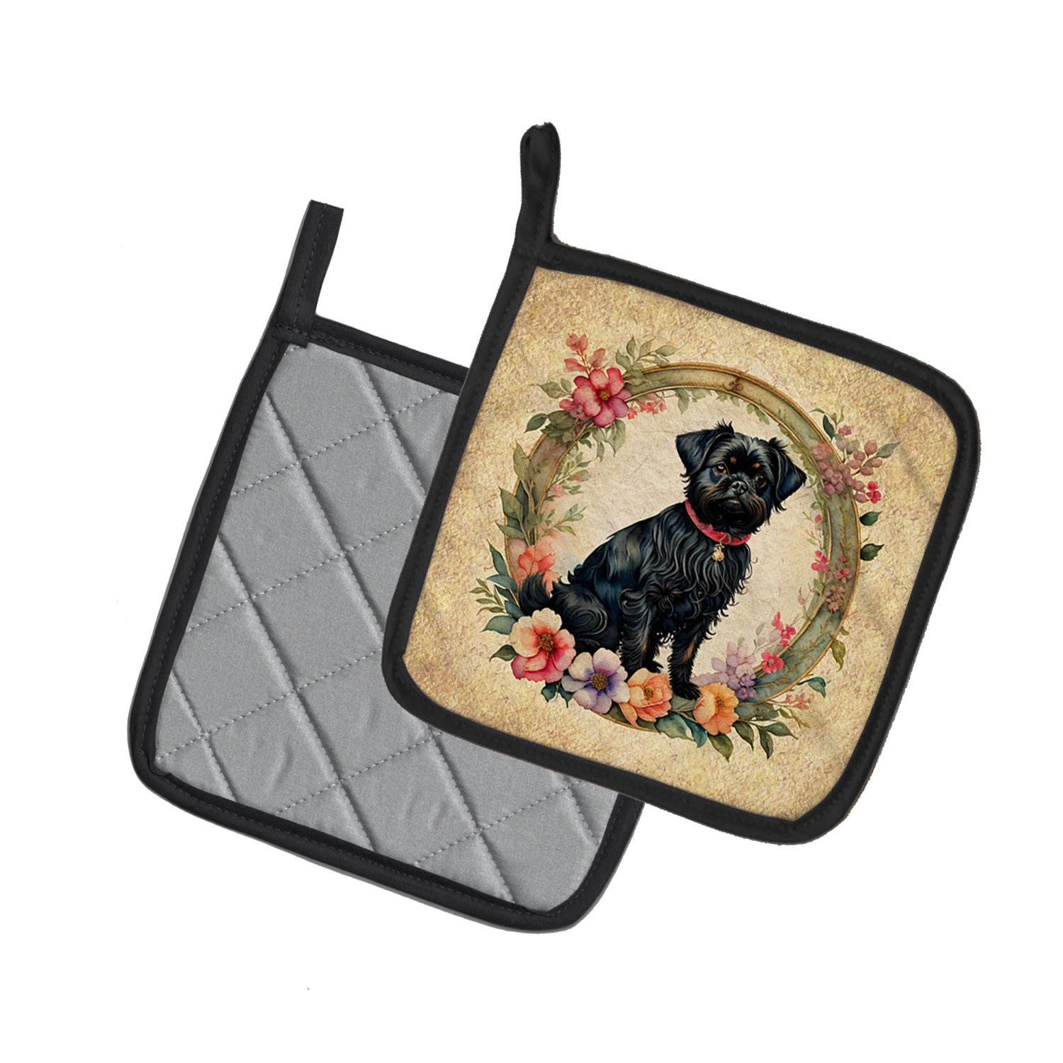 Affenpinscher and Flowers Pair of Pot Holders