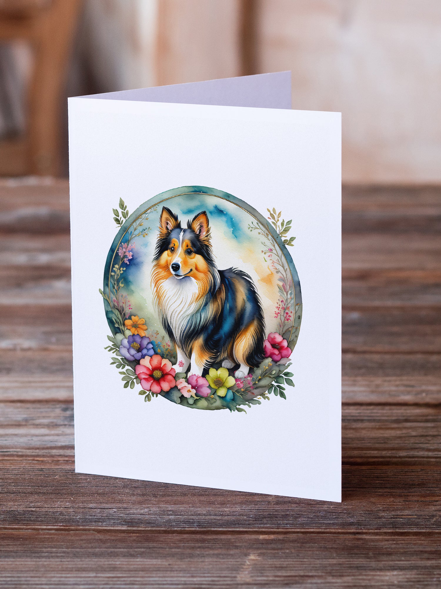 Sheltie and Flowers Greeting Cards and Envelopes Pack of 8
