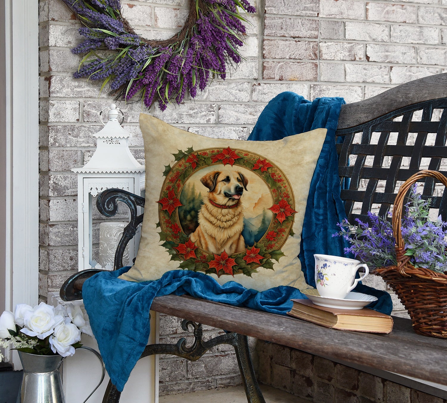 Throw Pillow featuring breed specific Anatolian Shepherd Dog artwork. Celebrate Christmas with this Christmas Pillow. Revitalize your outdoor or indoor living space with Caroline's Treasures 18x18 Fabric Decorative Pillow. With a generously sized dimension of approximately 18 inches by 18 inches, this pillow makes a comfortable and aesthetic addition to any seating area. Made from a unique, water-resistant material developed by Caroline's Treasures, the pillow sham is 100% polyester fabric that's durable and ready to weather any condition. Its vibrant, full-color artwork will not fade over time as it is dyed with color-fast dyes. Whether you place it on your patio furniture, porch, veranda, or indoor couch, its soft canvas fabric ensures a cozy experience. The pillow is handcrafted in the United States, featuring a sham created from three pieces of fabric and a polyester insert for enduring shape and overstuffed comfort. Despite being robustly built to endure the outdoors, it is as soft and snug as your favorite indoor cushions. Please note, as all our pillows are handmade, sizes may vary slightly, adding to the charm of this unique decorative item.