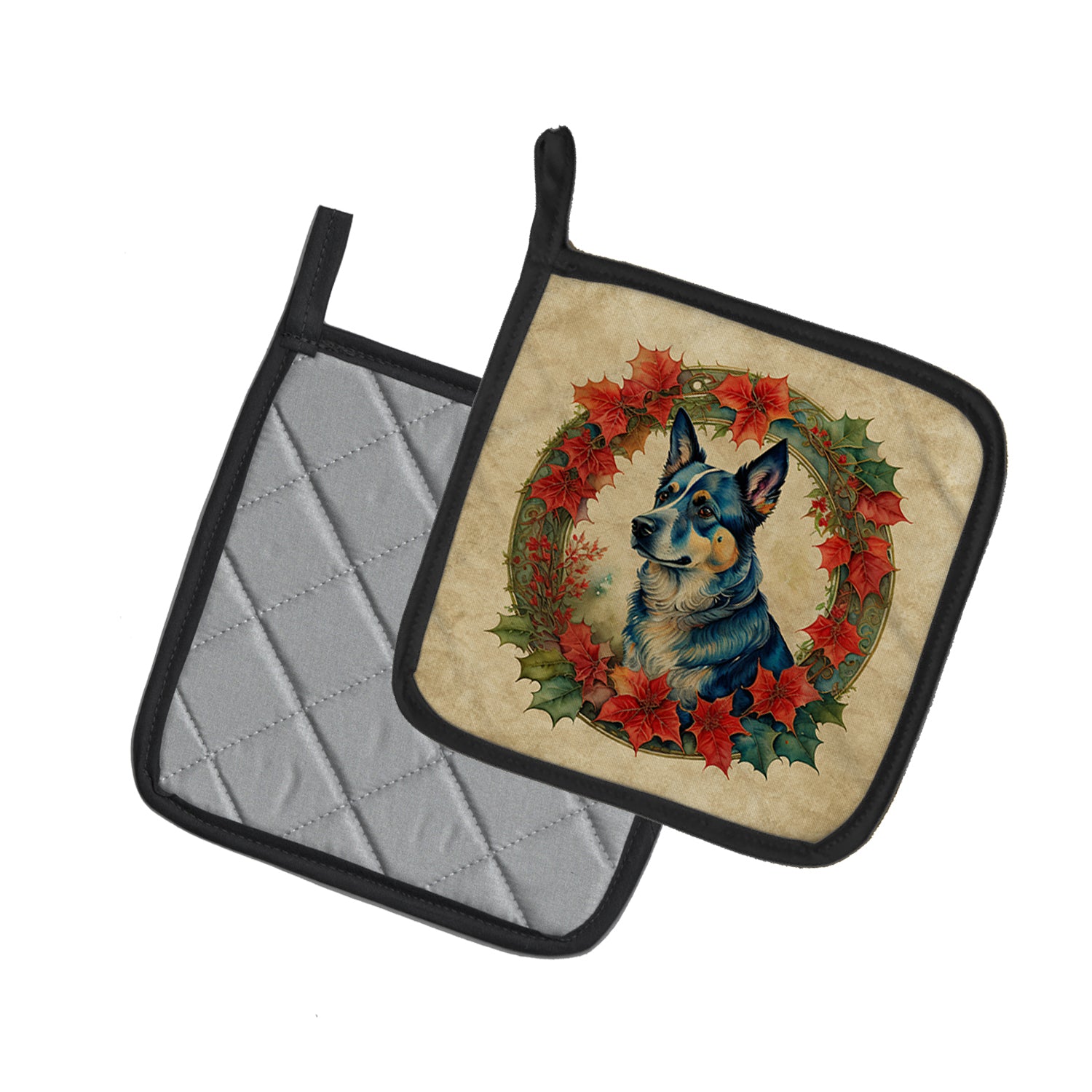Australian Cattle Dog Christmas Flowers Pair of Pot Holders